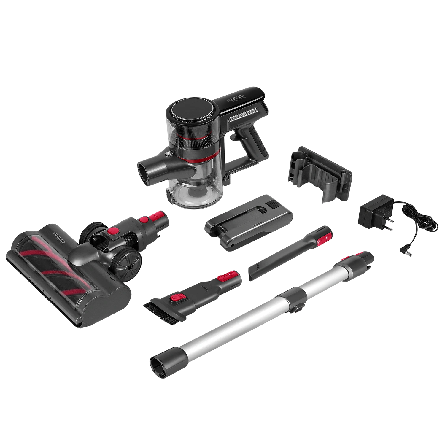 пылесос, адаптер питания, аккумулятор, телескопическая трубка, турбощетка с подсветкой, щелевая насадка, насадка «2 в 1», настенная зарядная станция, комплект винтов для настенной установки, руководство по эксплуатации и гарантийный талон