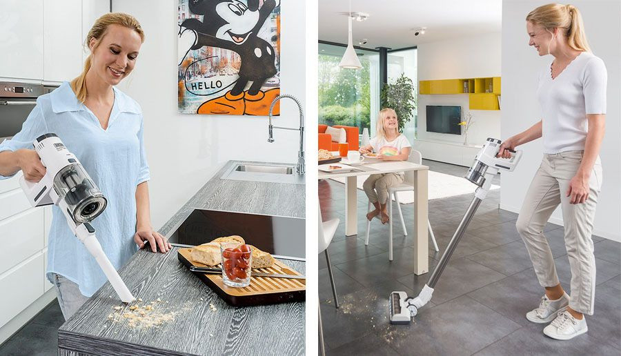 Особенности: Легкая замена аккумулятора и фильтра. Легкоснимаемый ролик из микрофибры. Настенный держатель с зарядной станцией и держателем для принадлежностей. LED индикатор зарядки.
