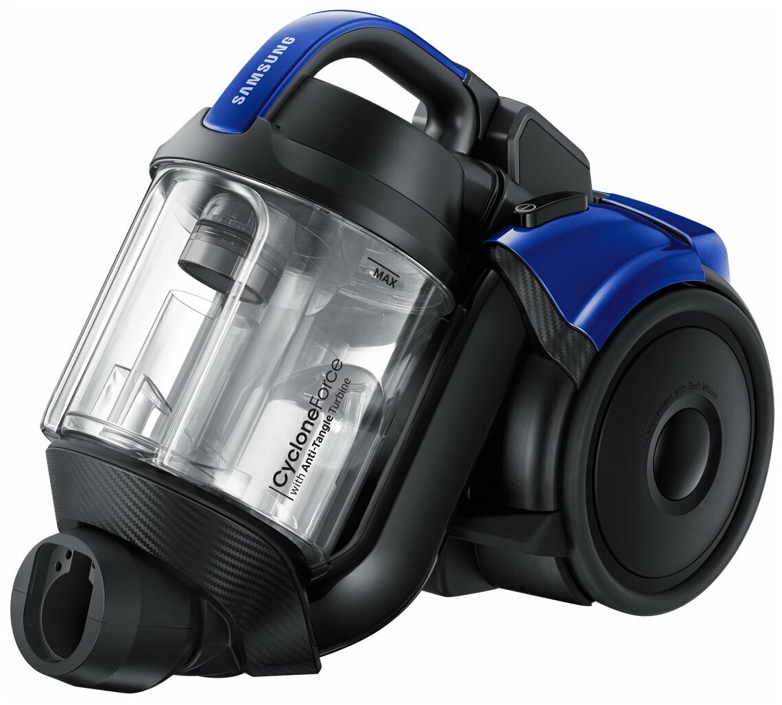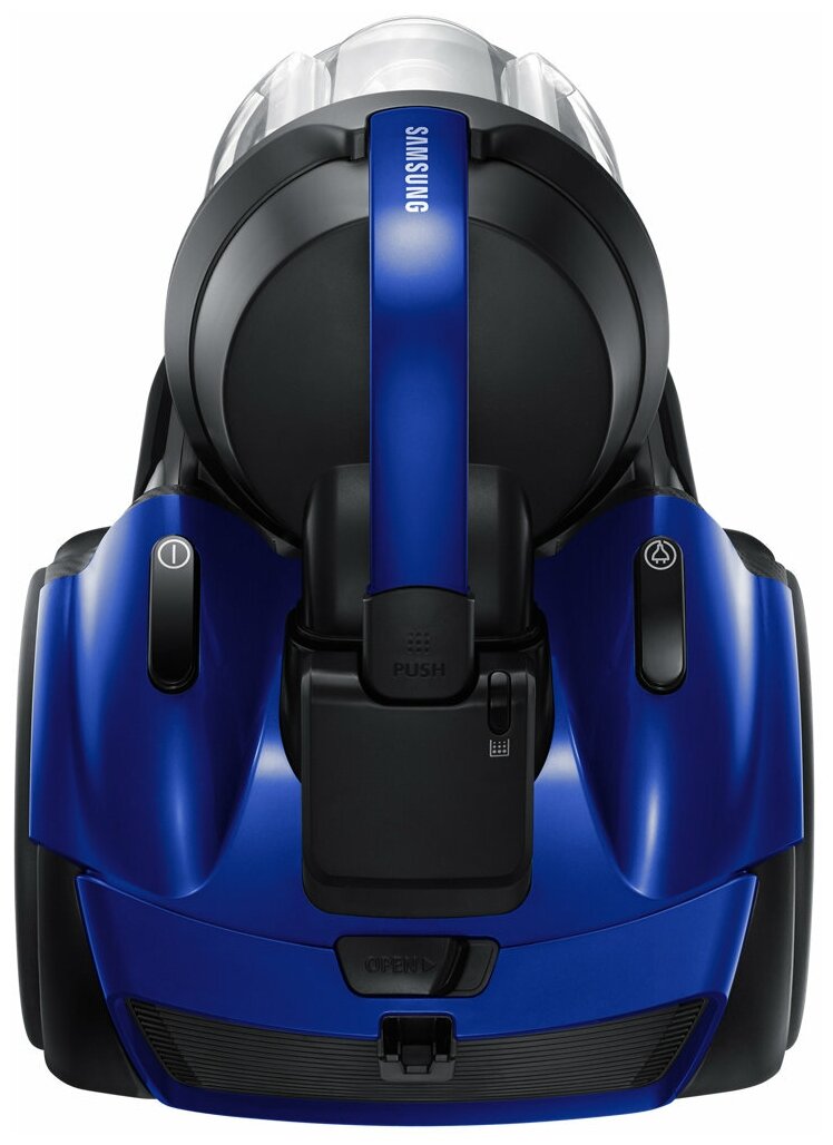 индикатор заполнения пылесборника, мягкий бампер, ножной переключатель вкл./выкл., управление мощностью на рукоятке