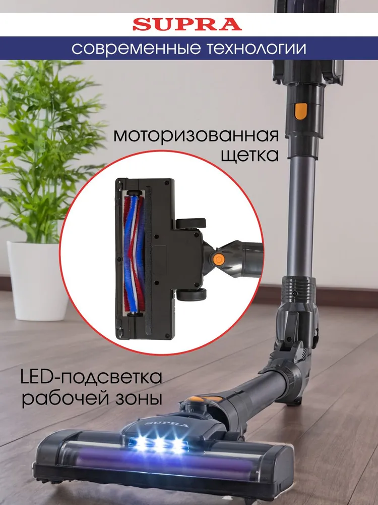 Особенности практически беззвучный BLDC мотор повышенной мощности всасывания, складная трубка для уборки труднодоступных мест, поворотная моторизированная щетка с LED подсветкой