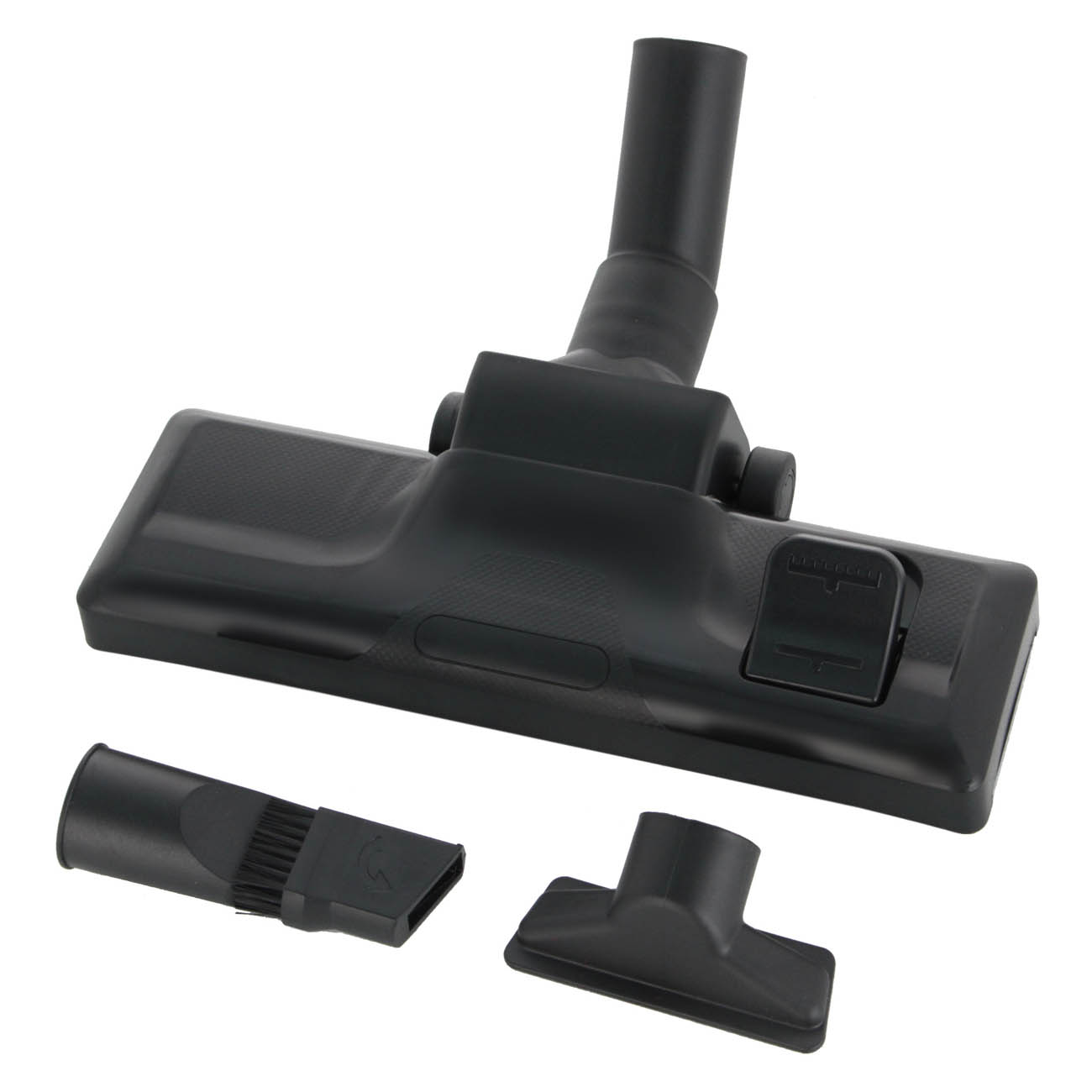В комплект входят три насадки. Помимо основной щётки, предусмотрены аксессуары для удаления мусора из щелей и ухода за мягкой мебелью.