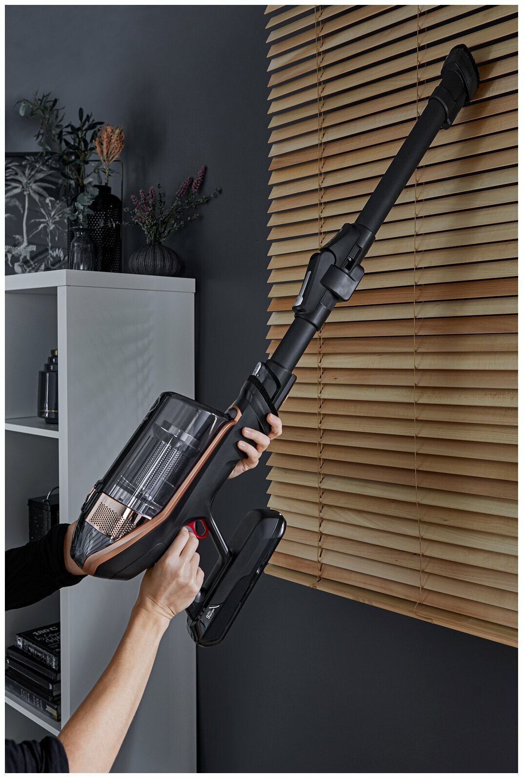 Индикация работы; Крепление насадок на трубе; Индикатор уровня зарядки; Отключение при перегреве; Плавный запуск двигателя; Крепление на стену; Индикация режима работы; Автоматическая регулировка мощности; Индикация разрядки аккумулятора; Микрофильтр; Циклонный фильтр; Моторный фильтр; Турбо режим; Сухая уборка; Комплектация: Зарядное устройство, Электрощетка, Док-станция, Сменный фильтр HEPA