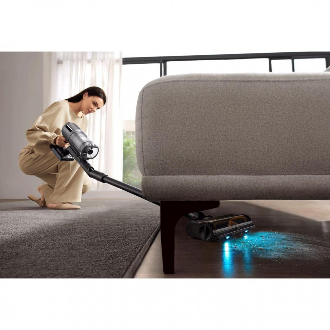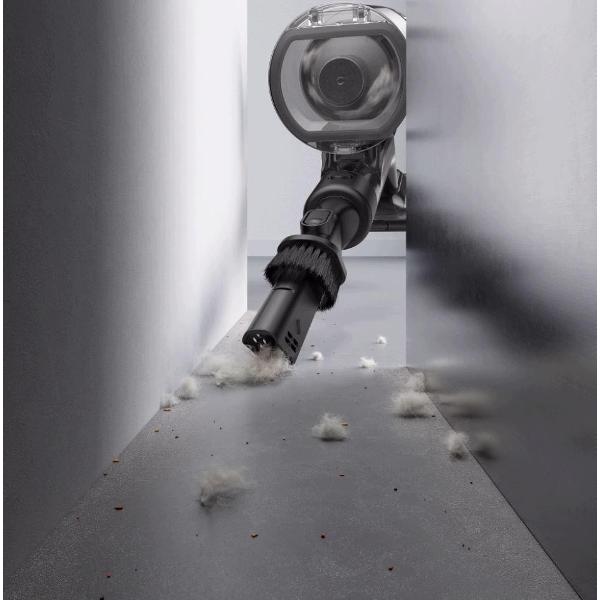 Подвижная щетка на шарнире. Индикация разрядка аккумулятора. Удлинитель составной трубки.