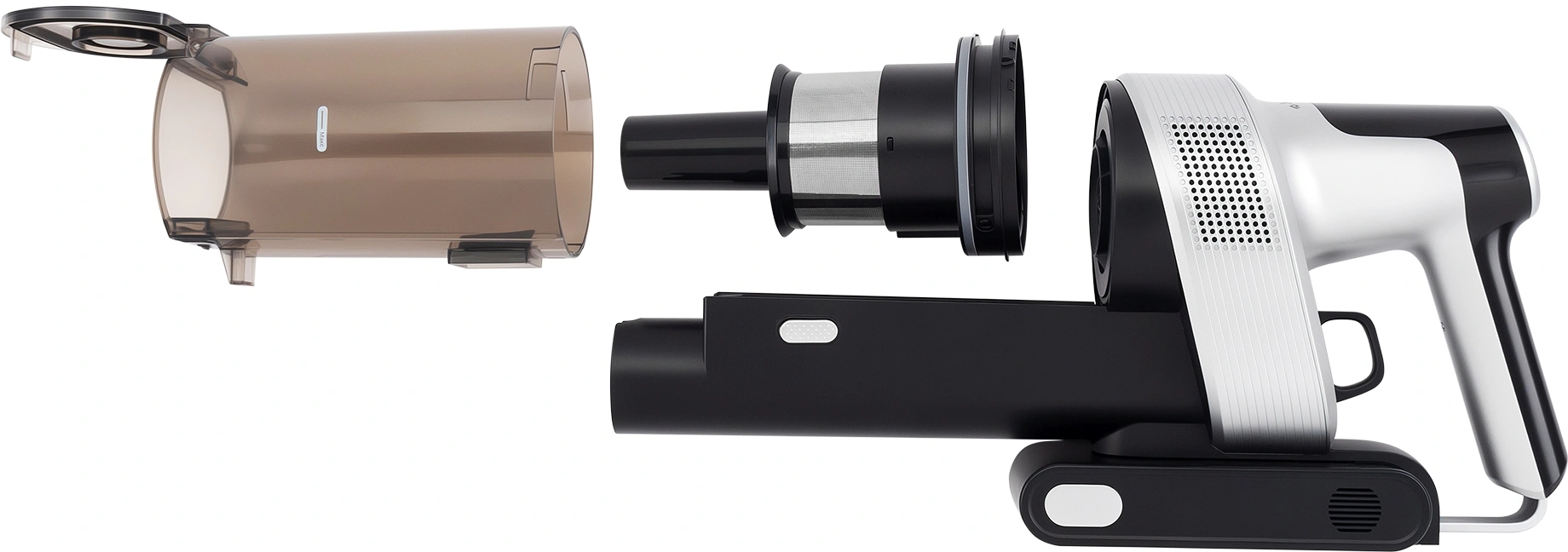 LED-дисплей, легко очищаемый пылесборник, подсветка зоны уборки, прорезиненные колеса