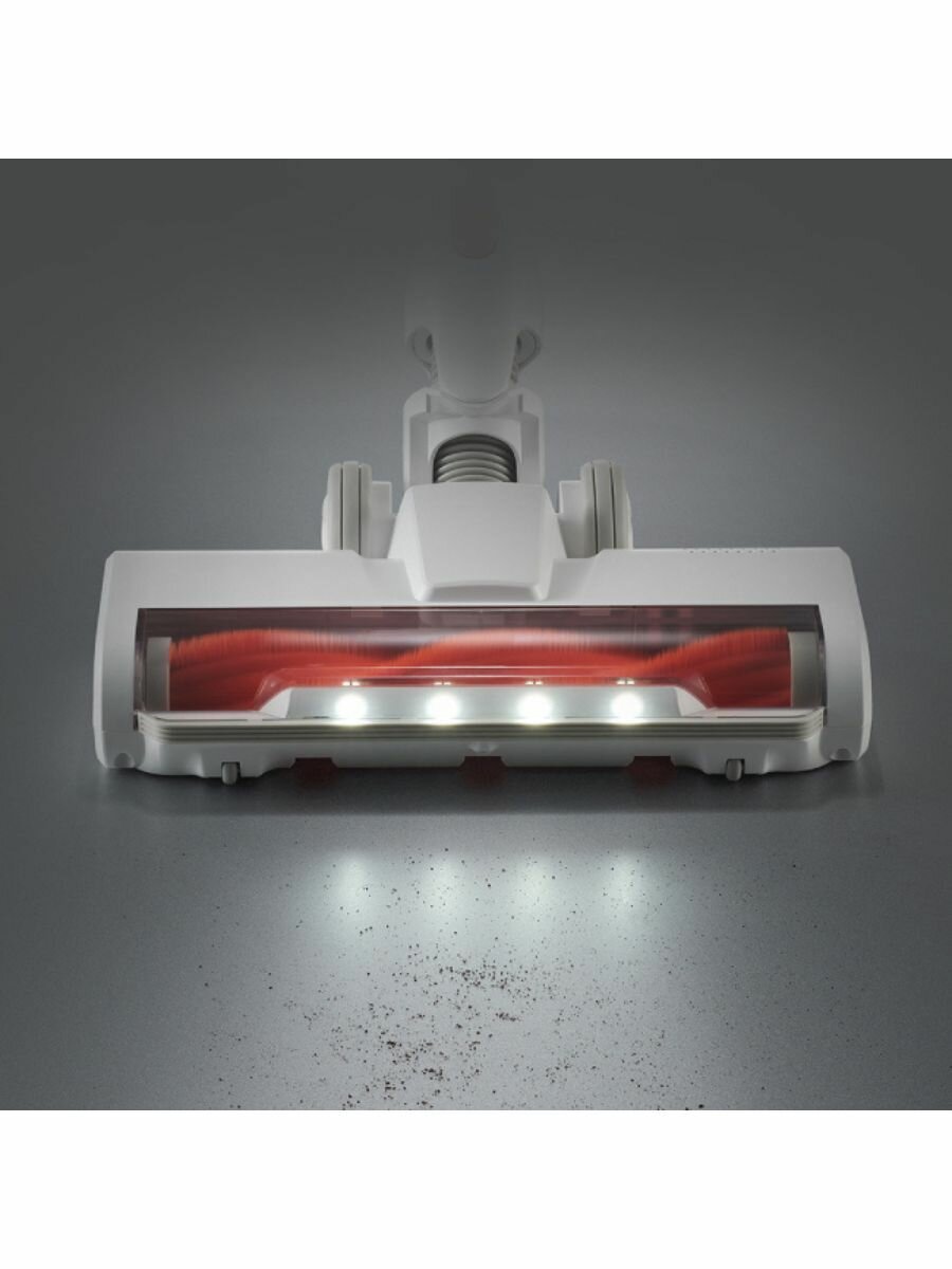 вертикальная парковка, индикатор заполнения пылесборника, место для хранения насадок, регулятор мощности на корпусе, управление мощностью на рукоятке, Подсветка зоны уборки, Регулировка мощности