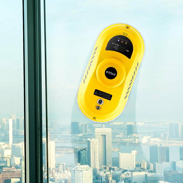 Робот Kitfort КТ-5186 предназначен для мытья стёкол изнутри и снаружи, кафельных и зеркальных покрытий в жилых домах и офисах. Робот оснащён вентилятором, благодаря которому создаётся разрежение, и он надёжно удерживается на вертикальной поверхности.