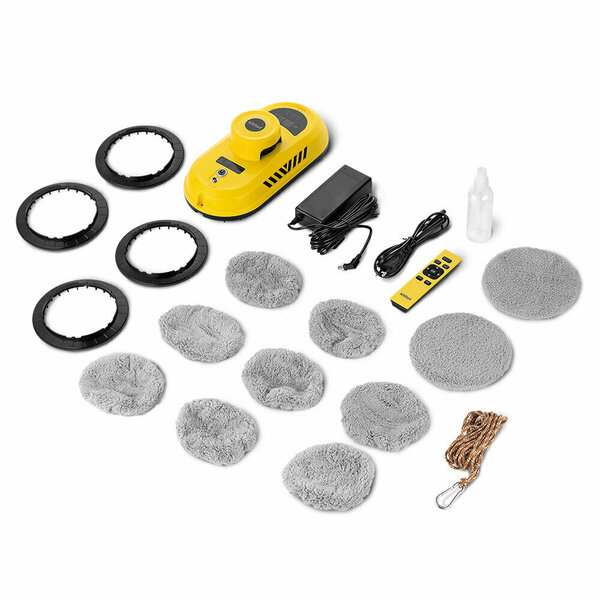 Робот для мойки окон, бутылка для воды с распылителем, пульт ДУ, батарейки ААА - 2 шт., держатель тряпки - 4 шт., блок питания, шнур питания, страховочный тросс с карабином, тряпка - 10 шт.