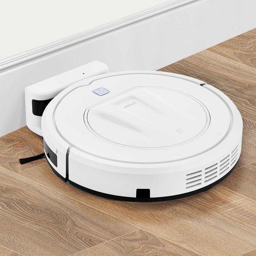 Робот-пылесос Kitfort КТ-5112 оснащён всасывающим раструбом и боковыми щётками для уборки вдоль плинтусов, диванов, косяков. Отсутствие турбощётки упрощает обслуживание пылесоса и обеспечивает хорошее всасывание мусора на протяжении всей уборки.