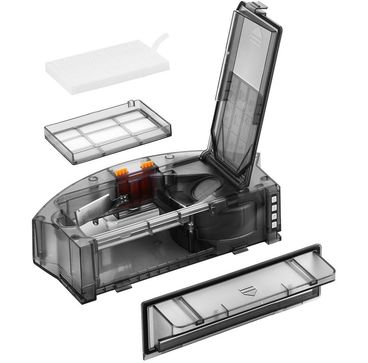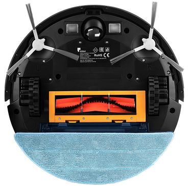 Комплектация 2 тряпки, 4 боковые щетки, съемный модуль для мытья пола, фильтр тонкой очистки, щетка для чистки, база для зарядки, документация