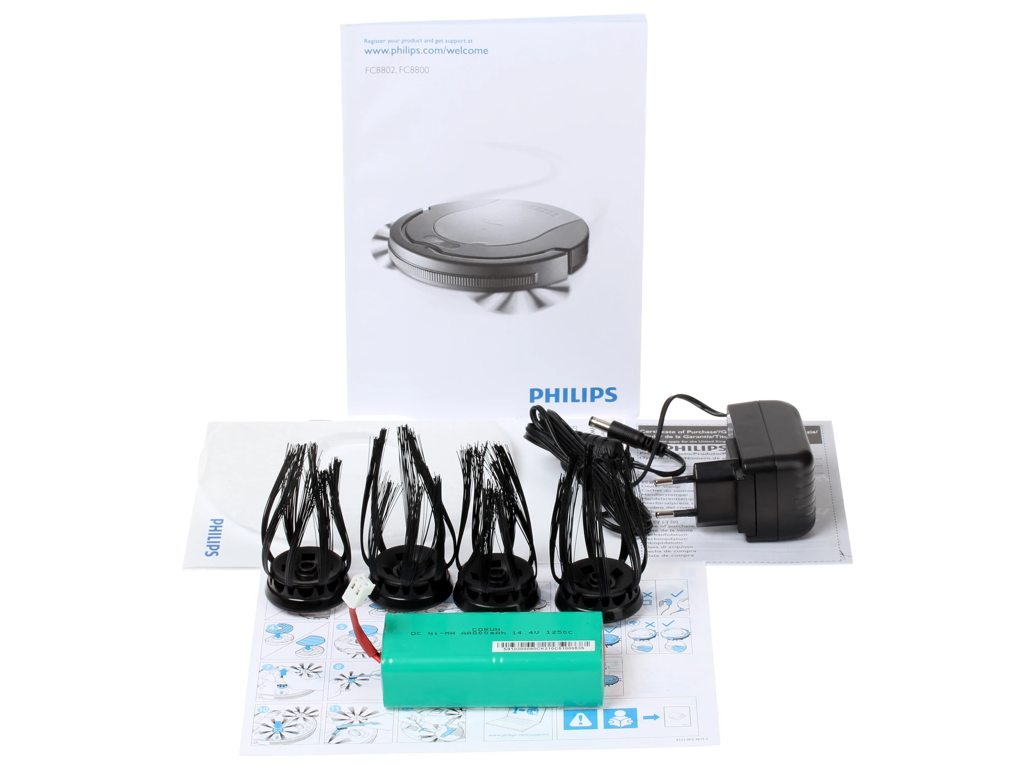 адаптер питания, боковые щетки х2, документация