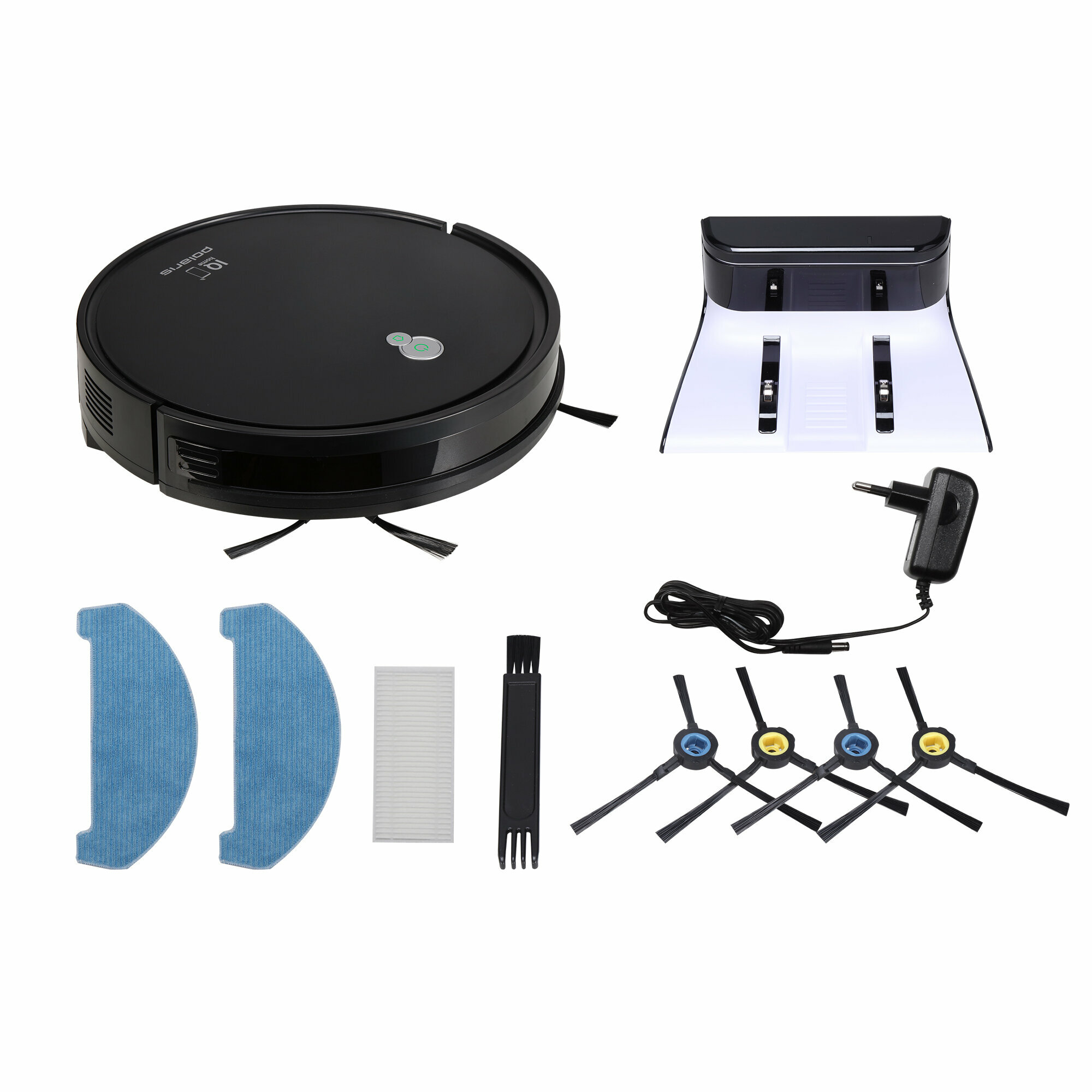 индикатор заполнения пылесборника, мусоросборник в базе, мягкий бампер, подсветка дисплея