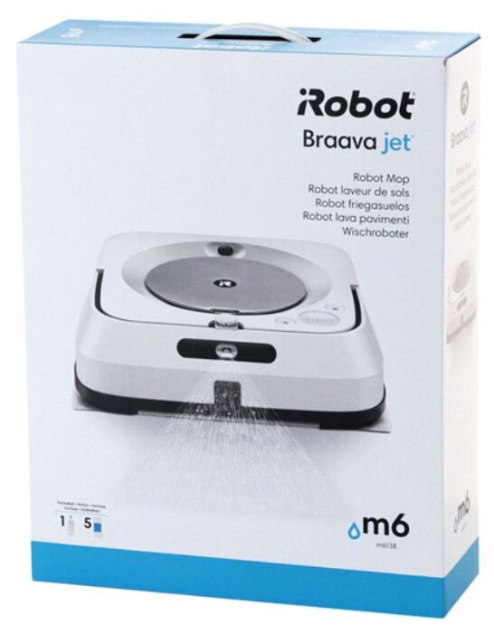 - настройка уровня распыления; локальная уборка SPOT; управление через приложение iRobot HOME; подключение по Wi-Fi; составление графика уборки дистанционно; настройка предпочтений для уборки; обмен данными с роботами-пылесосами Roomba i7 и s9; в комплекте входит зарядная станция, моющее средство Braava, одноразовая салфетка для влажной уборки, одноразовая салфетка для сухой уборки, многоразовая салфетка для сухой уборки, многоразовая салфетка для влажной уборки, кабель питания