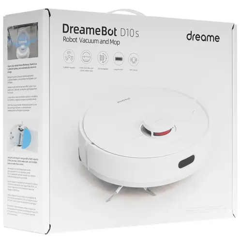 Робот-пылесос Dreame D10S умеет автоматически распознавать тип покрытия и повышать мощность при очистке ковров. Выбор подходящих параметров пользователь поручит голосовому ассистенту Алиса. Виртуальный ограничитель создает запреты, не позволяя модели покидать определенные участки. Главным звеном прибора выступил LDS-лазер, который помогает выстраивать траекторию движения.