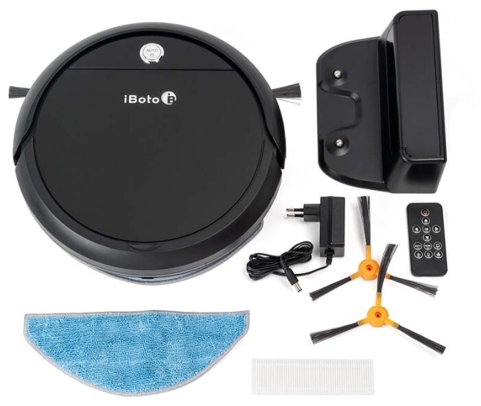 Комплектация сетевой адаптер, зарядная станция, контейнер для сухой уборки, запасные боковые щетки 2 шт., запасная салфетка, инструкция по применению, контейнер для влажной уборки, запасной фильтр, пульт ДУ
