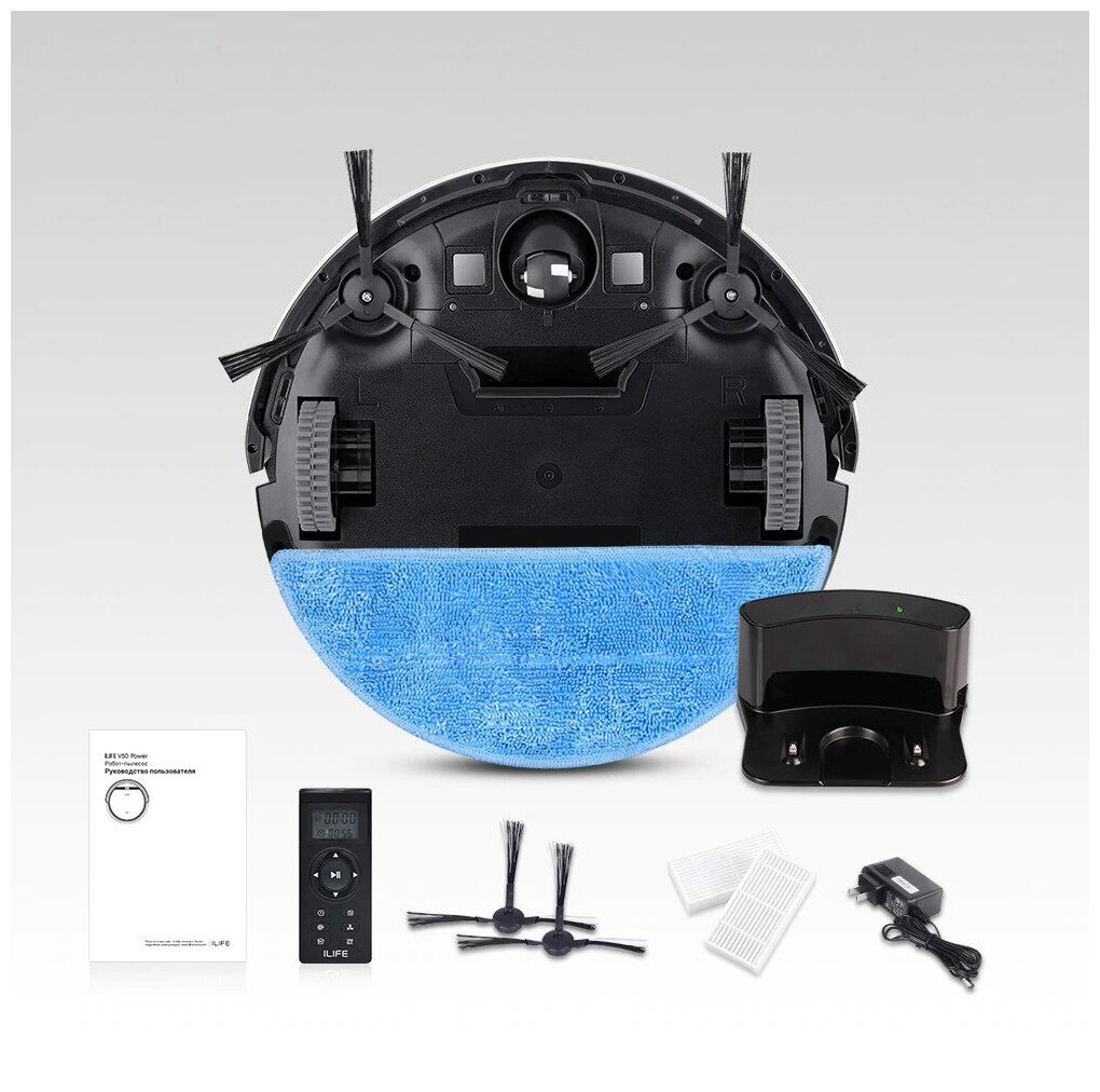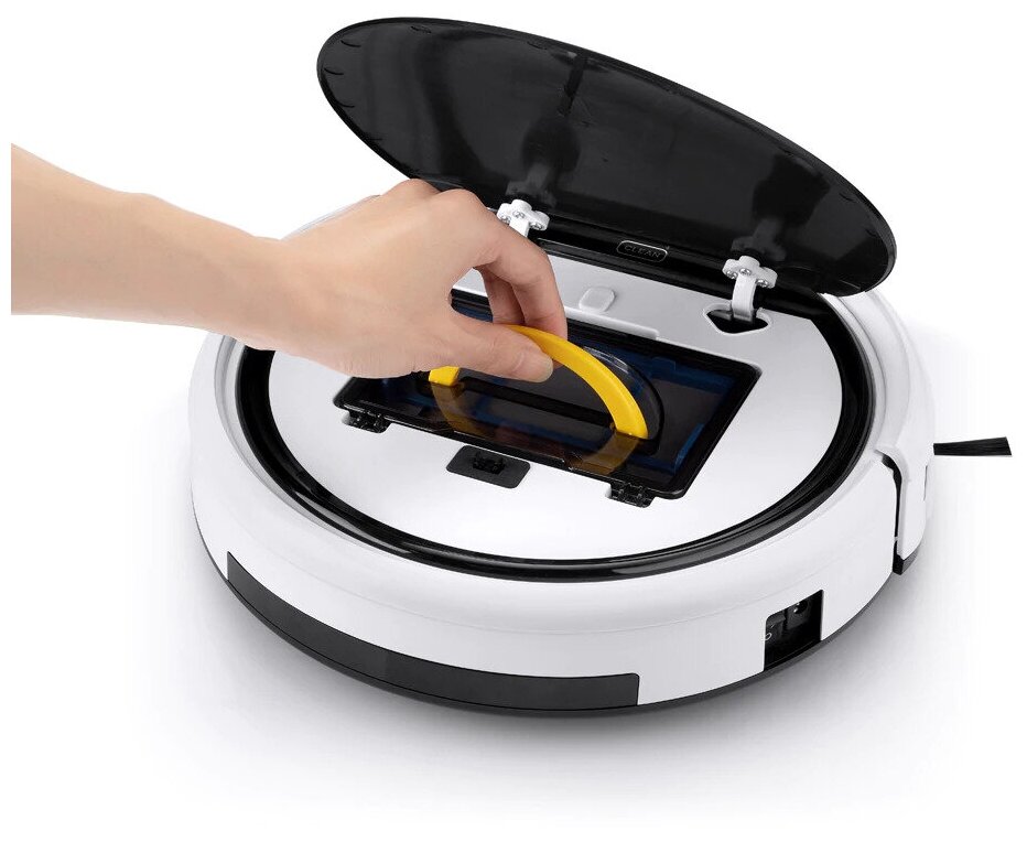 площадь уборки до 150 м2; мощность всасывания до 1000 Па; в комплекте: база для зарядки, адаптер питания, пульт ДУ, запасные боковые щетки, запасной фильтр, щеточка для очистки пылесборника, салфетка из микрофибры
