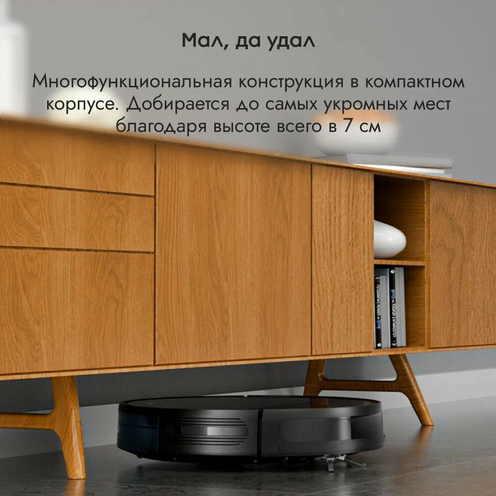 Тройная система фильтрации. Управление через приложение. 3 уровня влажной уборки. «Ручное» мытье пола. Четыре уровня мощности.