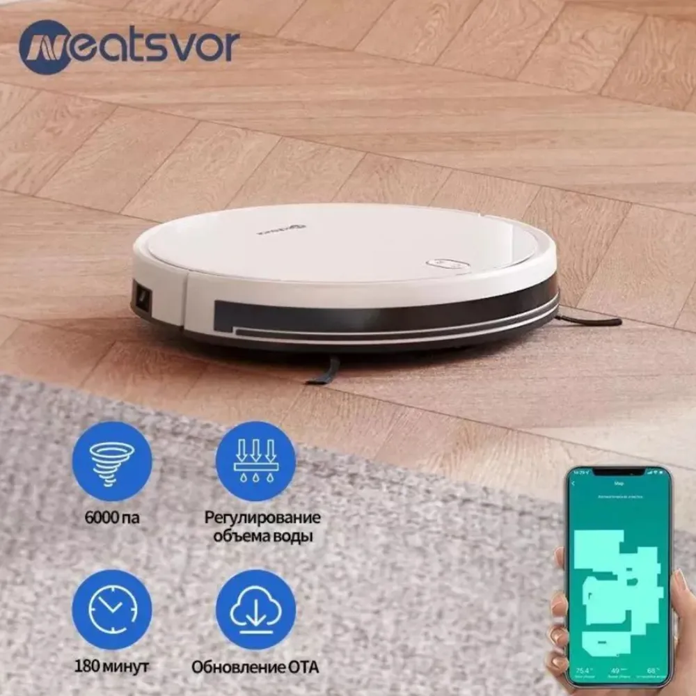 Управление пылесосом: Пульт ДУ, Управление со смартфона, Регулировка мощности, Программирование по дням недели, Управление на рукоятке, Таймер
