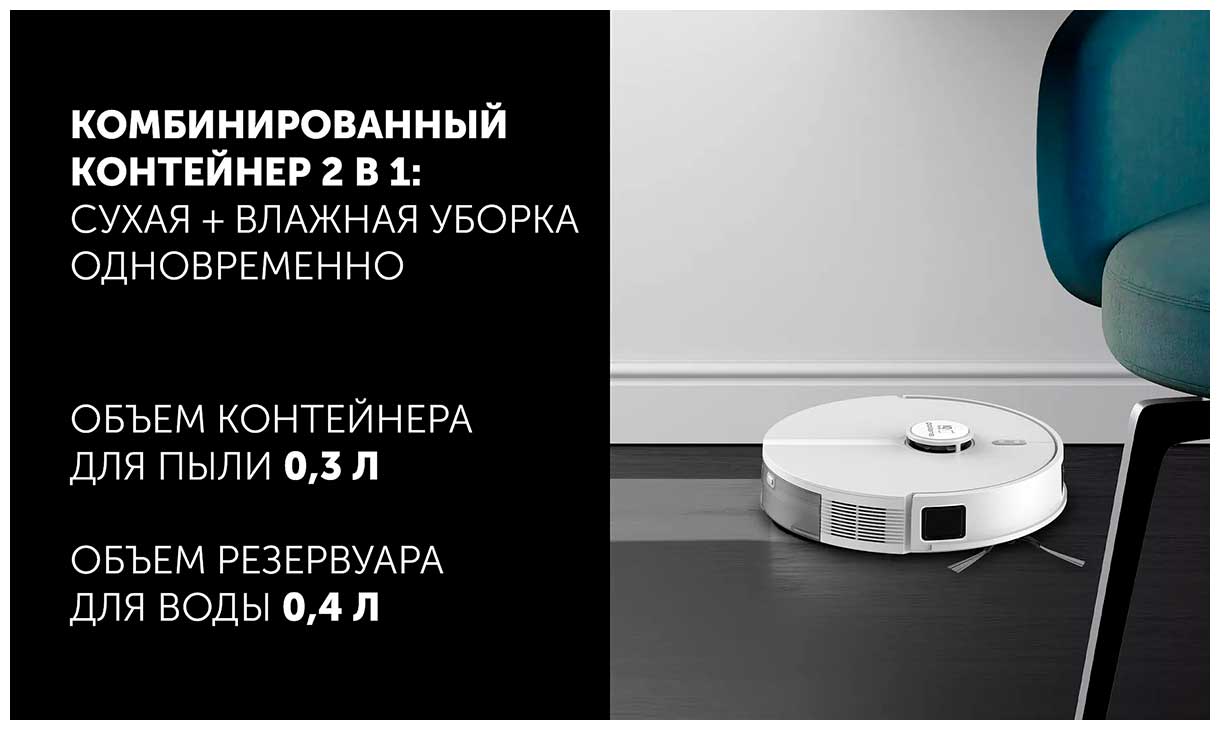 Сухая и влажная автоматическая уборка;