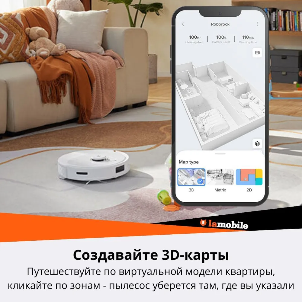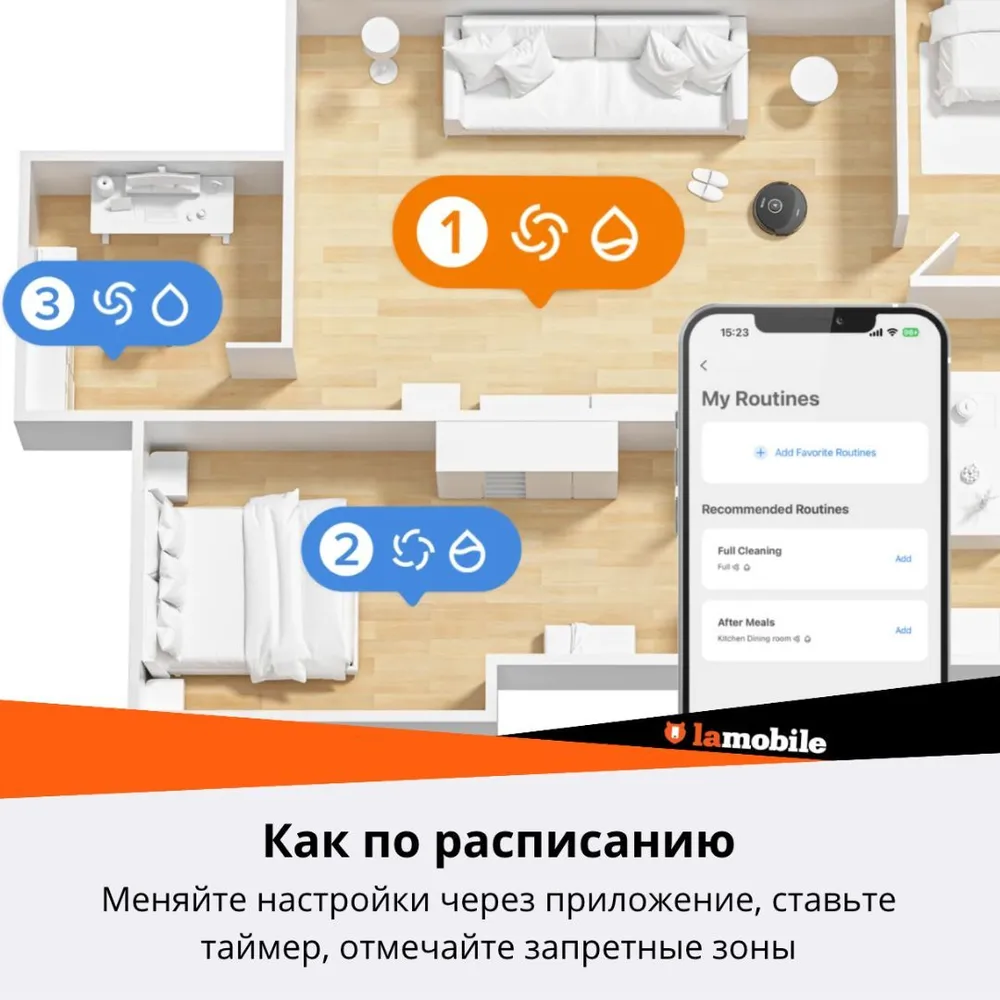 Управление пылесосом: Виртуальная стена, Ограничение времени уборки, Таймер, Управление со смартфона