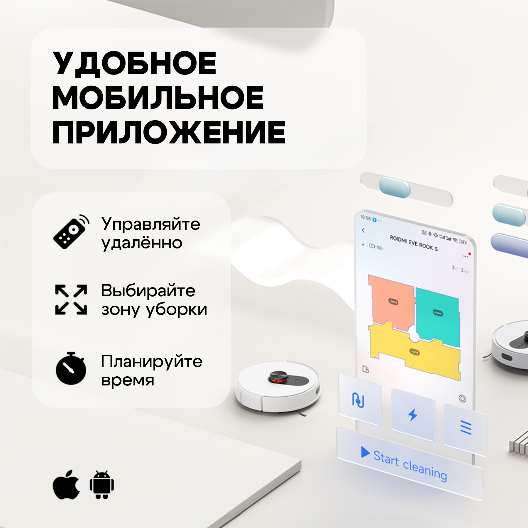 Обнаружение препятствий; Уборка по расписанию