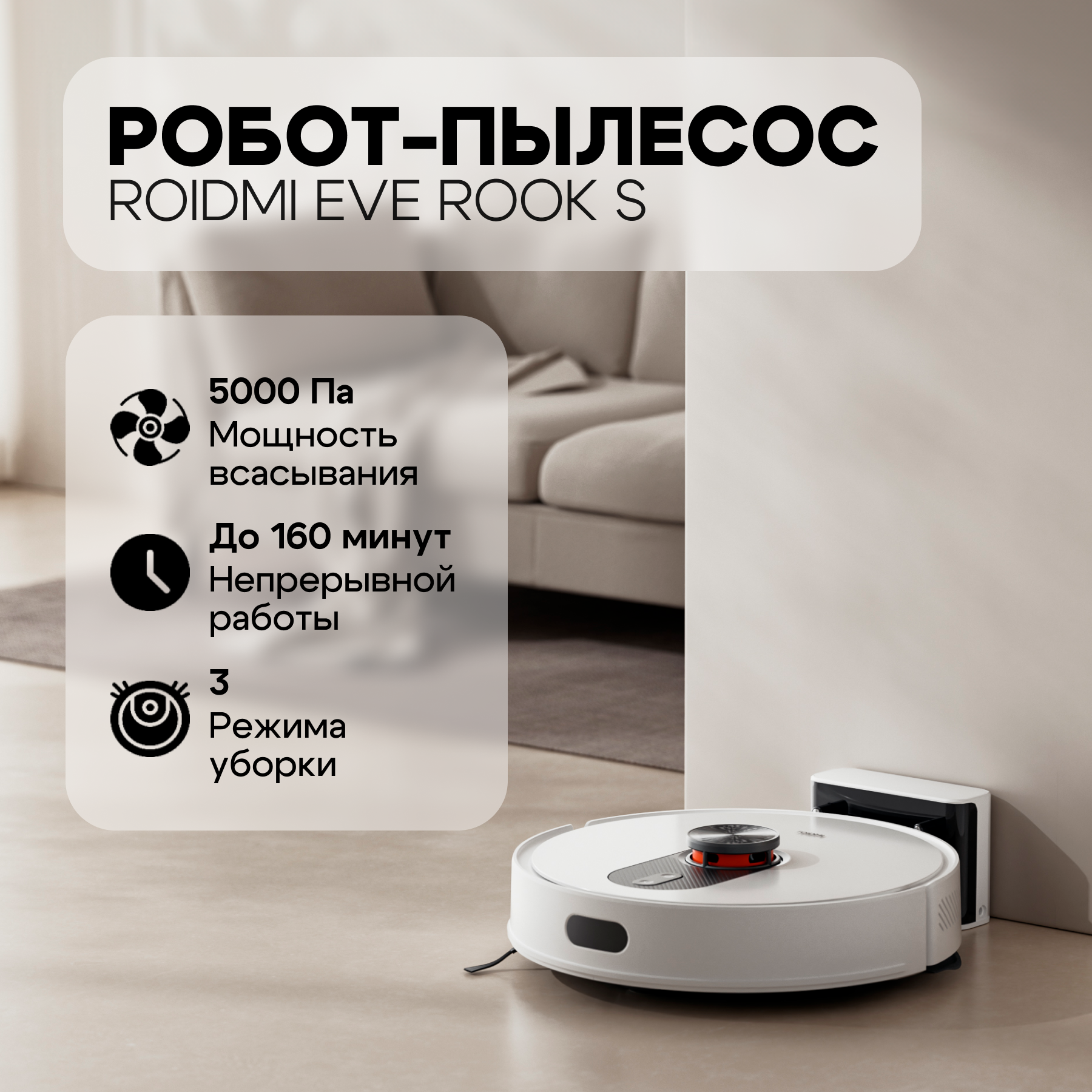 Аккумулятор и автономность: Roidmi EVE ROOK S оснащён ёмким аккумулятором, который обеспечивает длительное время автономной работы без подзарядки. После завершения уборки пылесос автоматически возвращается на зарядную станцию для подзарядки аккумулятора.