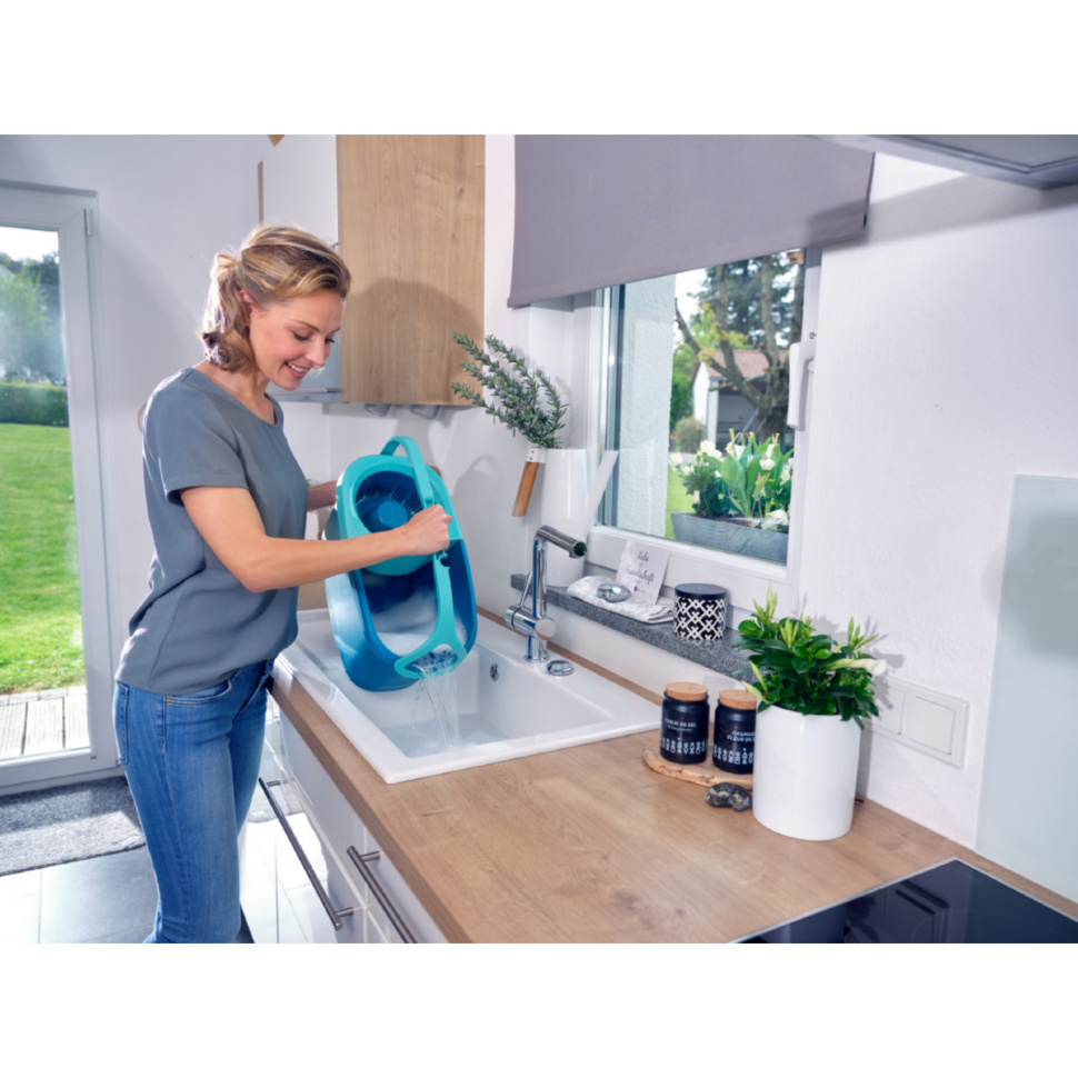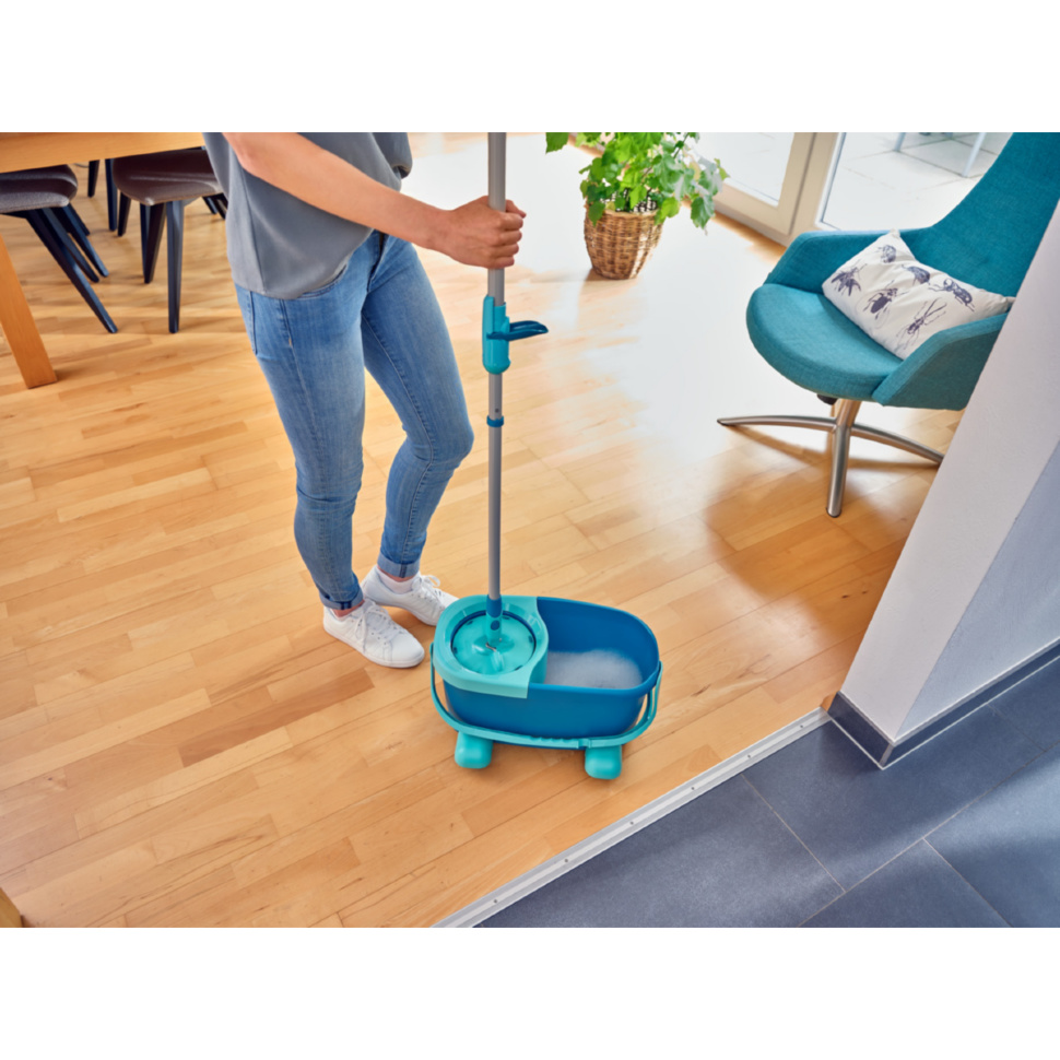 Новая система от Leifheit Clean Twist Disc Mop Ergo Mobile - идеально подходит тем, кто ищет полноценную систему для мытья полов. Комплект включает в себя все, что нужно для идеальной уборки. От швабры с телескопической ручкой и насадкой Micro Duo для мытья полов любого типа до ведра со встроенной системой центробежного отжима и тележки для комфортного перемещения ведра во время уборки.