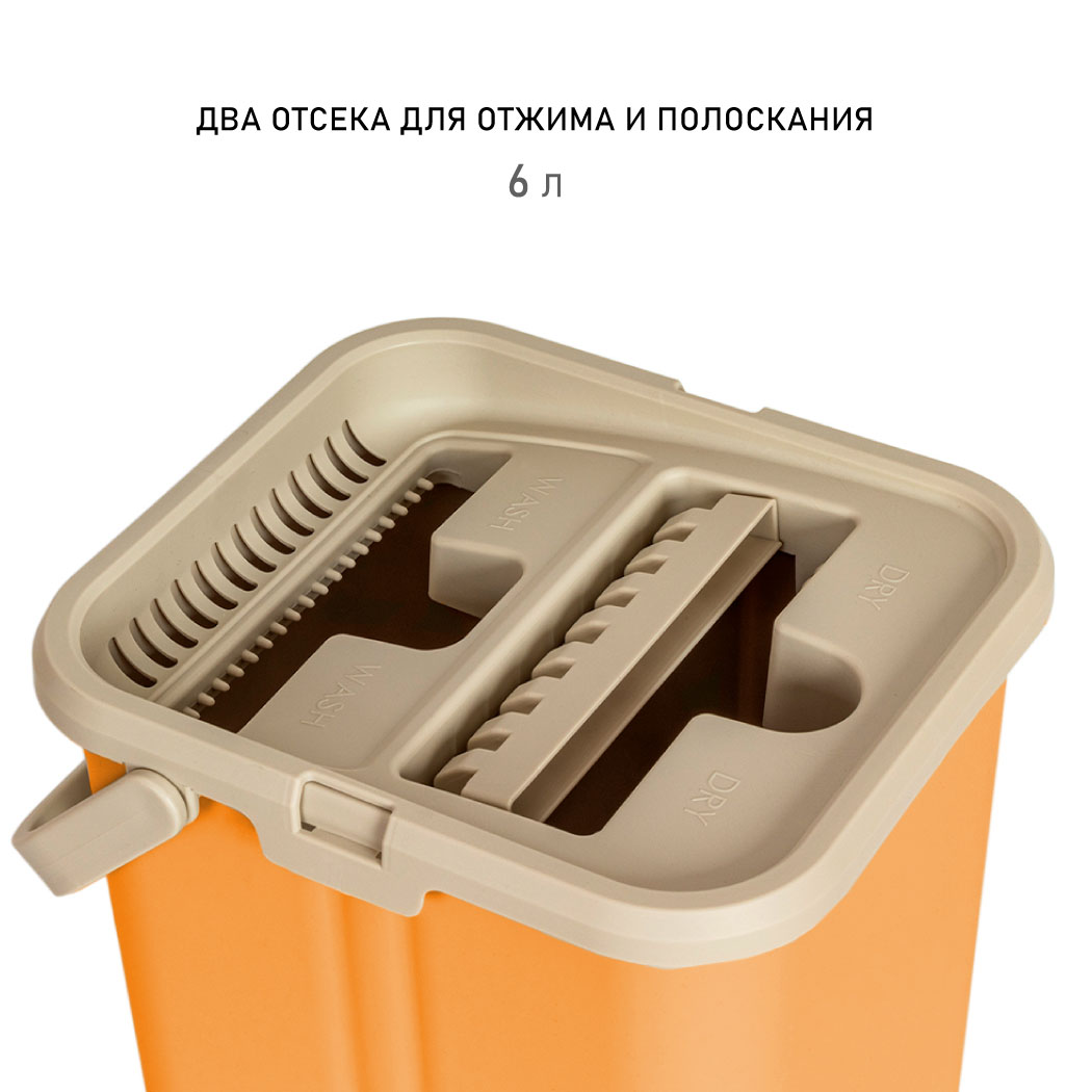 Состав набора: швабра, ведро с отжимом и полосканием, насадка из микрофибры