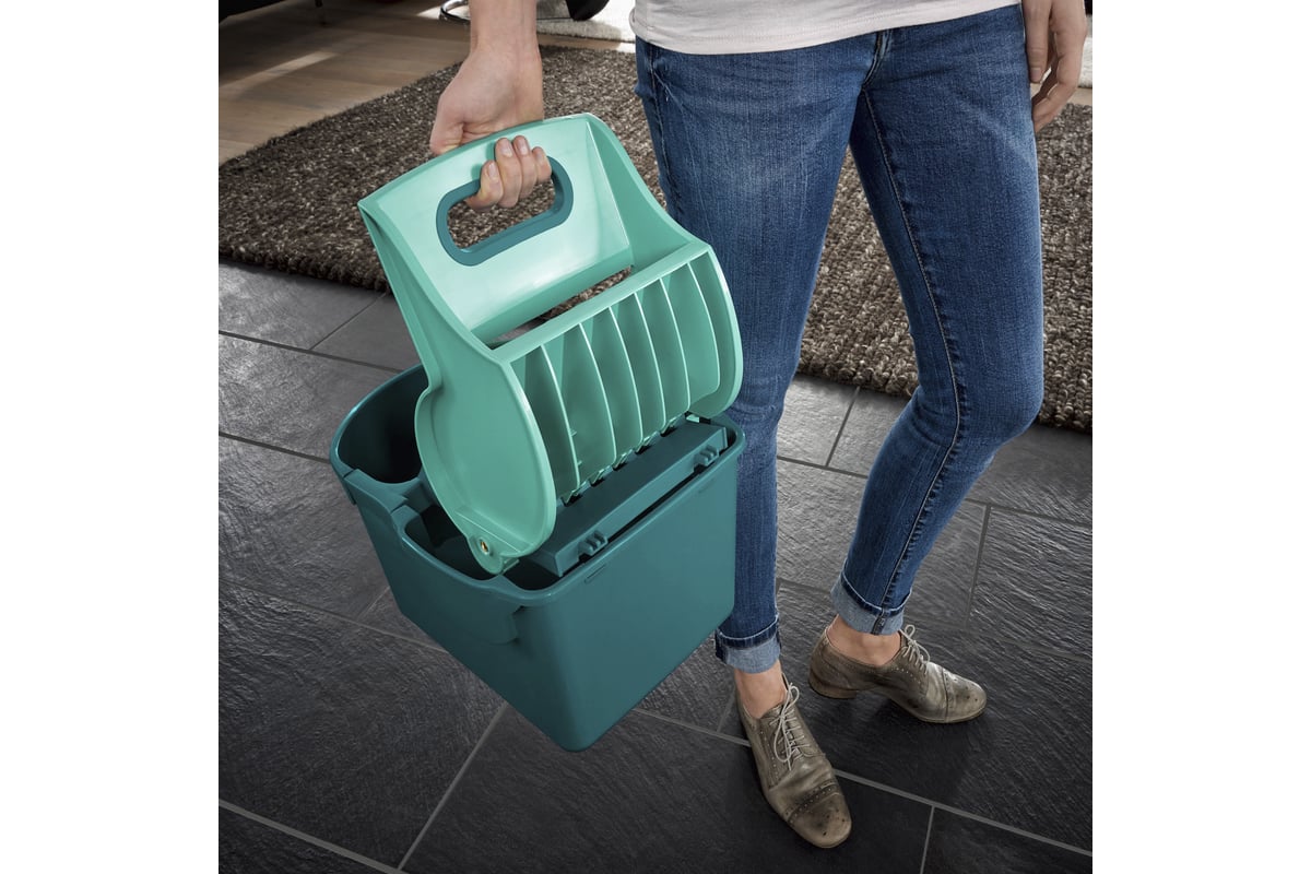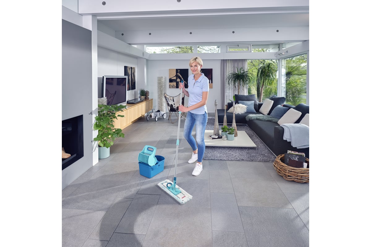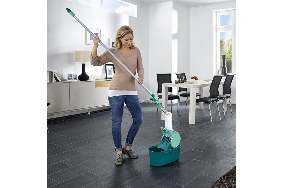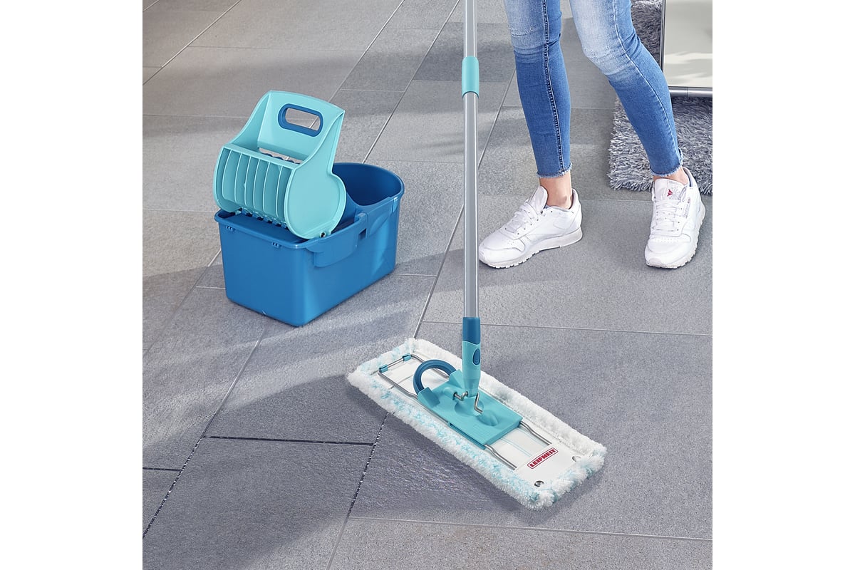 Возможность регулировать степень отжима мопа, позволяет применять набор для уборки Leifheit для разных покрытий: кафеля, линолеума, ламината или паркета.