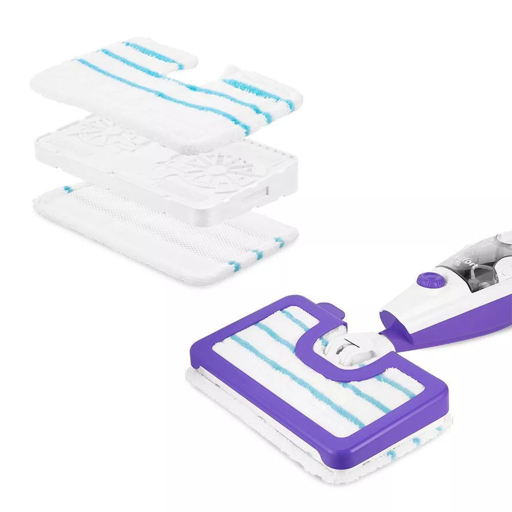 Тряпки для пола устанавливается на напольную щётку с двух сторон с помощью липучек. Их можно стирать в стиральной машине в тёплой воде. В комплекте есть рамка для ковра, которая обеспечивает лёгкое скольжение щётки во время чистки.