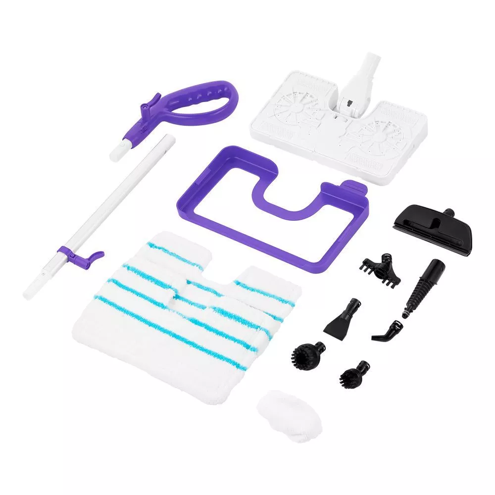 Множество насадок, которые идут в комплекте с паровой шваброй, справятся с труднодоступными местами и сложными поверхностями. Стакан для наливания воды служит для удобного и безопасного наливания воды в резервуар.