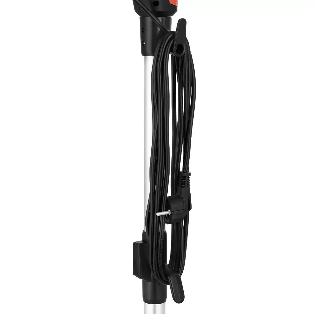 При хранении швабра не займёт много места. Шнур длиной 4,7 м не сковывает и не ограничивает ваше перемещение во время уборки. На ручке и корпусе швабры имеются держатели для смотки шнура.