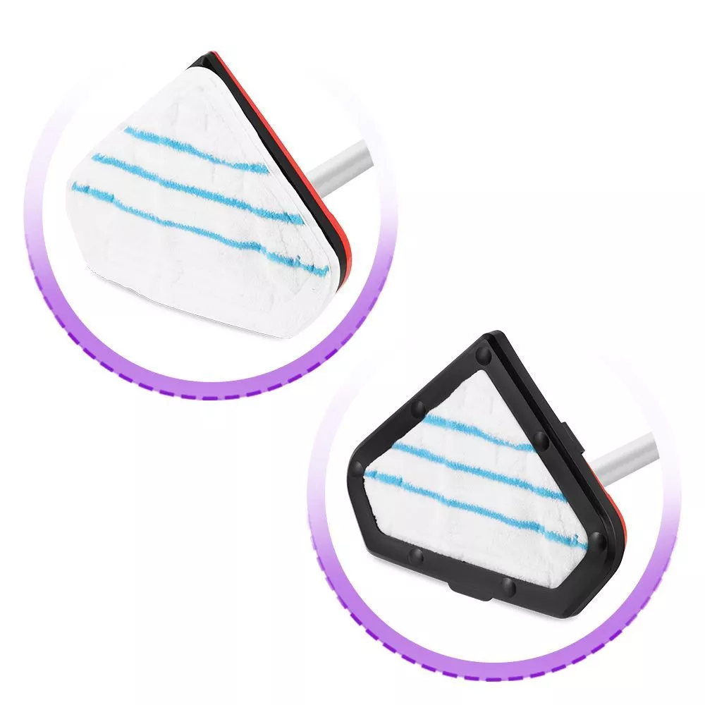 Тряпка для пола устанавливается на напольную щётку с помощью липучек. Её можно стирать в стиральной машине в тёплой воде. В комплекте есть рамка для ковра, которая обеспечивает лёгкое скольжение щётки во время чистки.