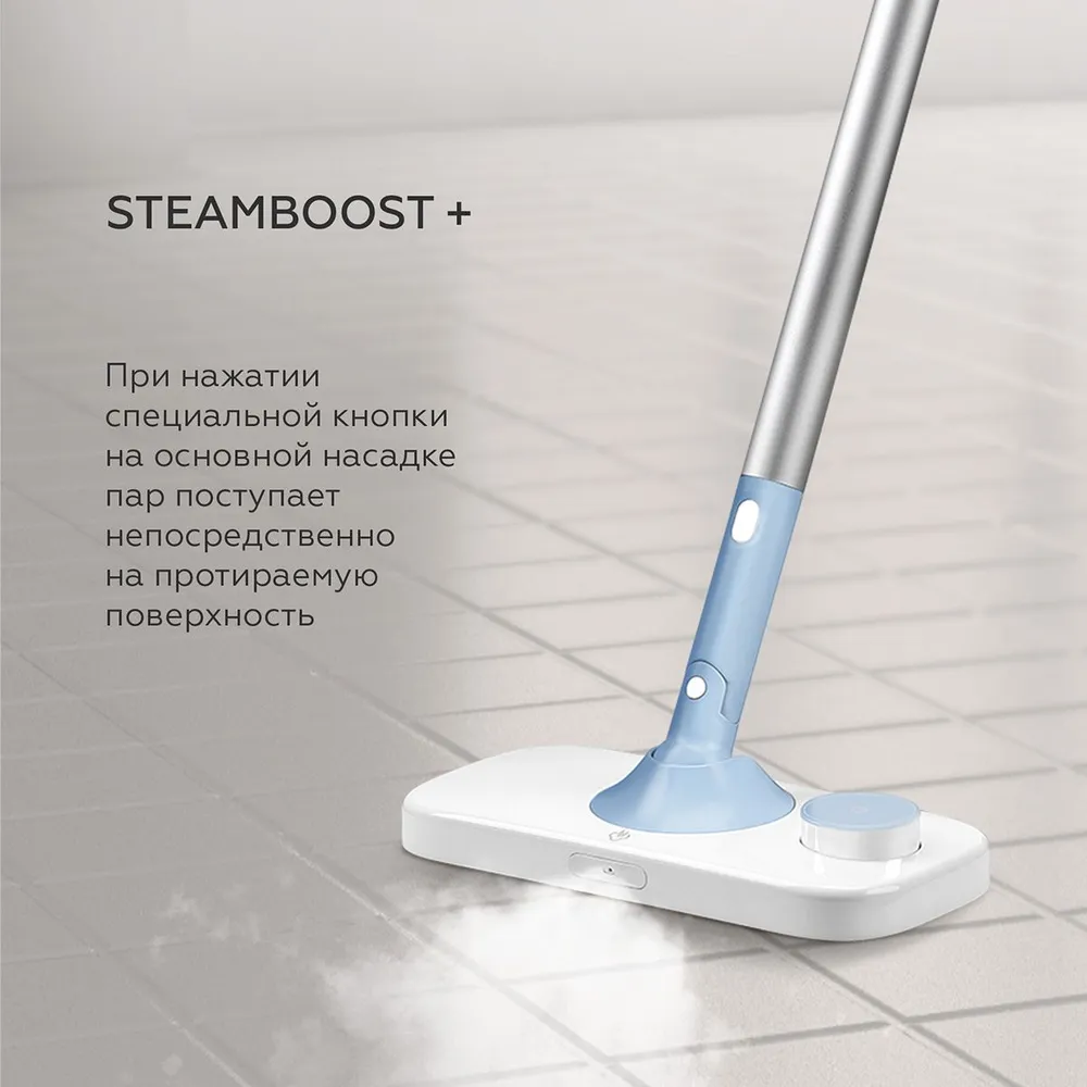 Паровая швабра BQ SM1003 - это больше, чем просто швабра. Паровой шваброй можно производить чистку паром различных поверхностей. Принцип действия прибора - как у парогенератора, основан на воздействии горячего пара на загрязнения. Пар проникает внутрь загрязнения, размягчая и растворяя его, а затем с помощью тряпки или щетки частички грязи смываются. Высокая температура пара весьма способствует процессу очистки. В корпус паровой швабры встроен парогенератор с резервуаром для воды объемом 380 мл, которого хватает до 20 мин непрерывной подачи пара.