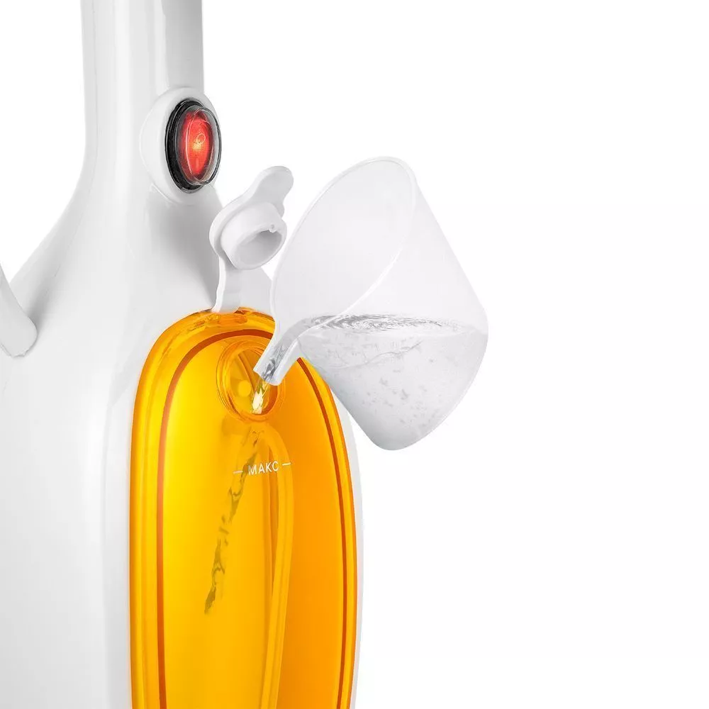 Устройство оснащено несъёмным резервуаром для воды ёмкостью 280 мл, что позволяет производить непрерывную уборку в течение 13 минут. Во время работы паровой швабры вода из резервуара подается в бойлер помпой (водяным насосом).