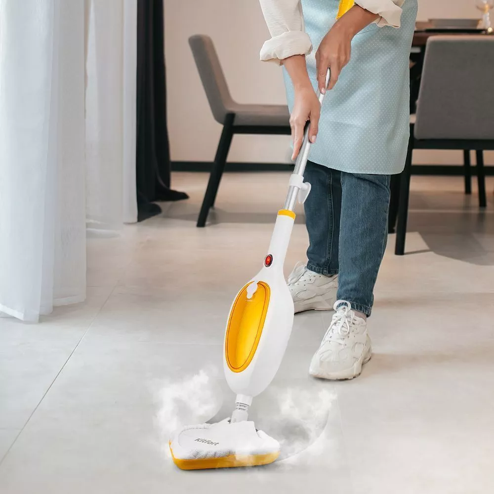 Паровая швабра КТ-1054 — универсальное устройство, которое поможет избавиться от пыли и грязи с помощью мощной струи пара, а также продезинфицирует поверхность. Паровая швабра очистит раковину и плиту на кухне, зеркала и мебель исключительно паром.