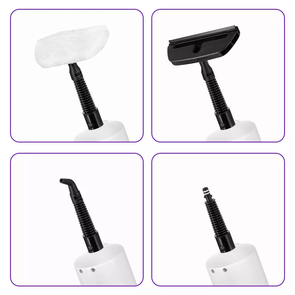 Множество насадок, которые идут в комплекте с паровой шваброй, справятся с труднодоступными местами и сложными поверхностями.