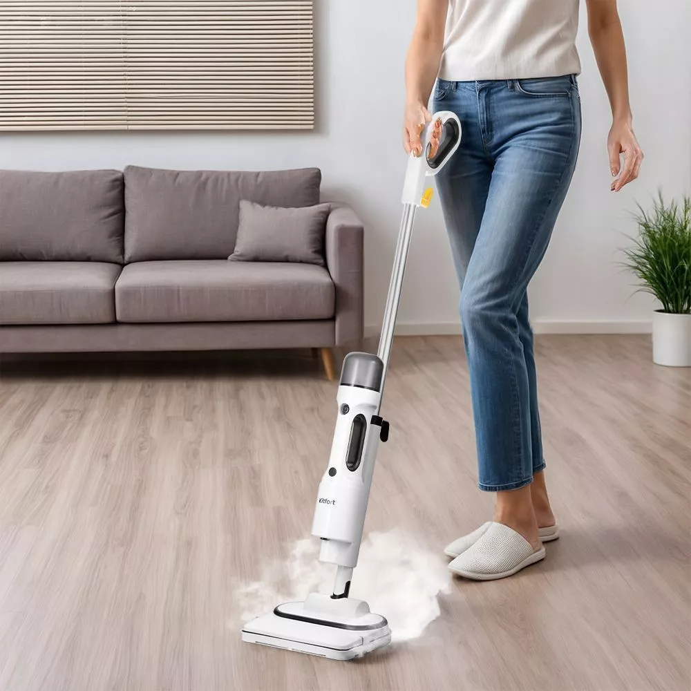 Уборка с паровой шваброй КТ-1062 будет проходить быстро и легко. Для неё не нужны чистящие средства, поэтому она станет идеальным решением уборки для аллергиков. В комплекте есть рамка для ковра, которая обеспечивает легкое скольжение щётки по ковру.