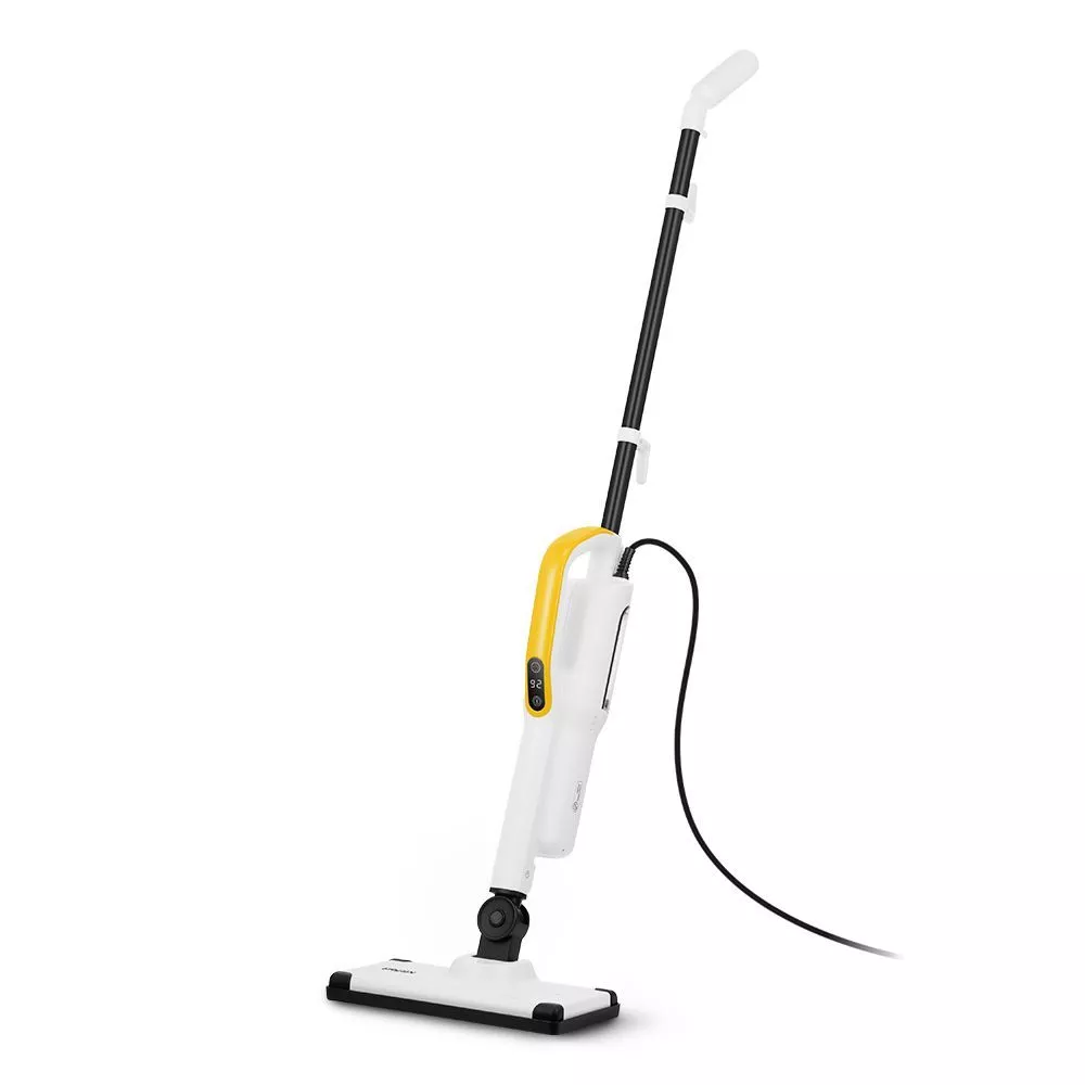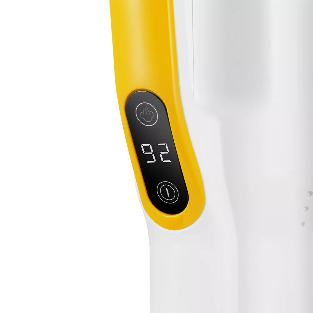 На ручке устройства находятся дисплей, кнопки включения и выбора уровня подачи пара. Три уровня подачи пара позволяют настраивать интенсивность выходящего пара. Это очень удобно при очистке разных типов поверхностей с разным уровнем загрязнения.