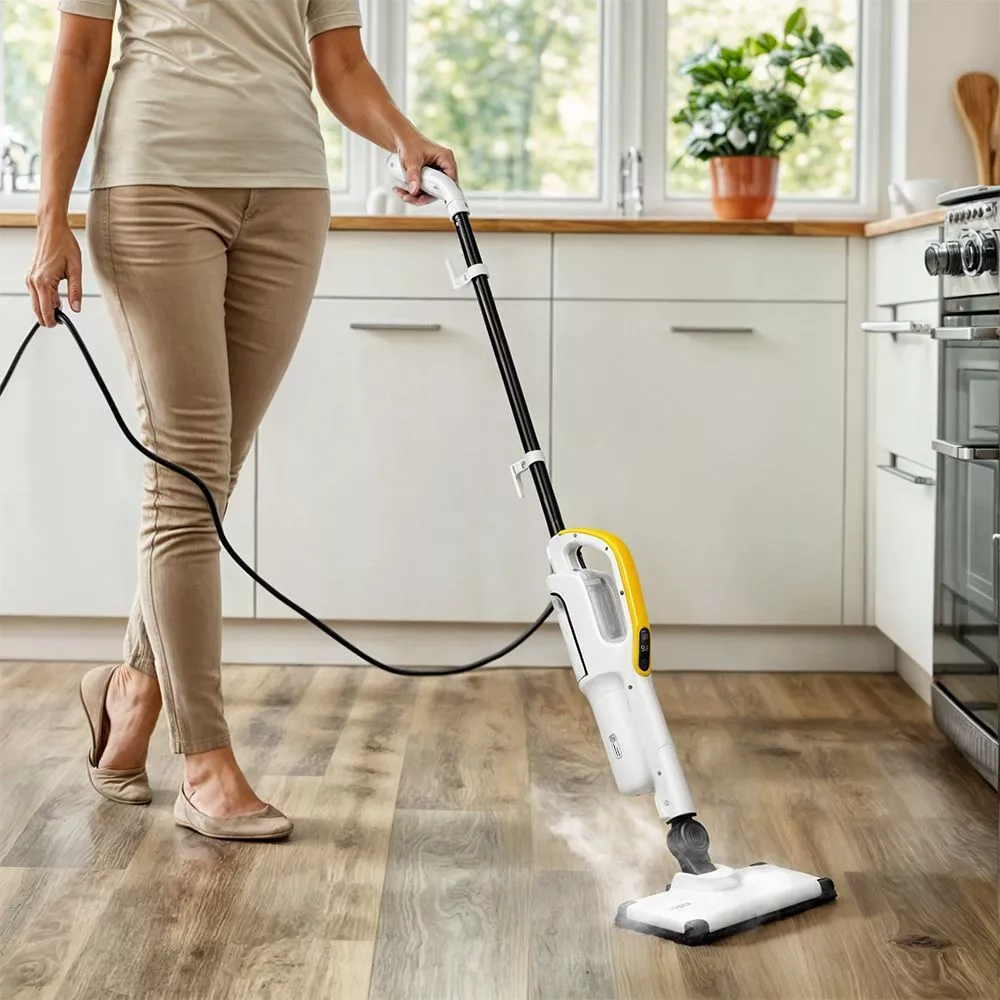 Паровая швабра КТ-1063 — универсальное устройство, которое поможет избавиться от пыли и грязи с помощью мощной струи пара, а также продезинфицирует обрабатываемую поверхность. Уборку паровой шваброй можно проводить без чистящих средств.