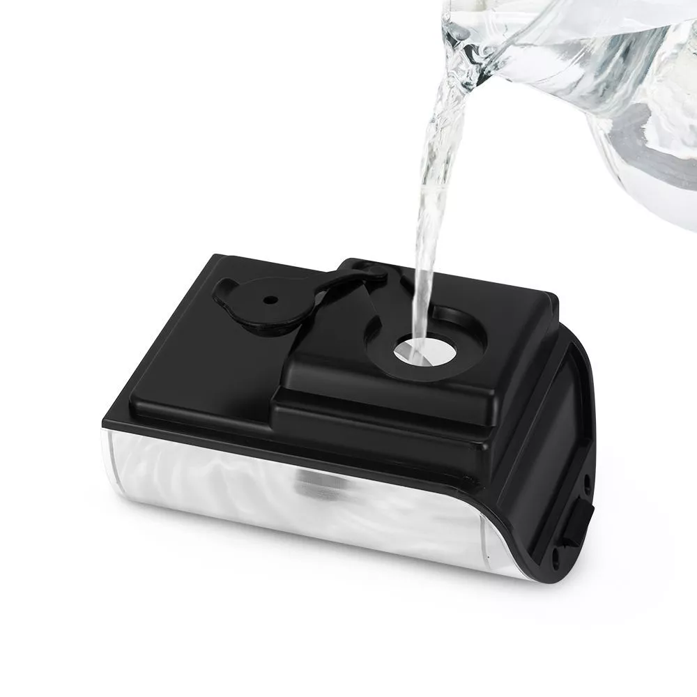 Устройство оснащено съёмным резервуаром для воды ёмкостью 440 мл, что позволяет производить непрерывную уборку до 18 минут.