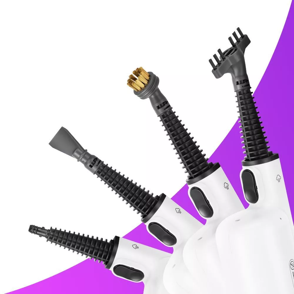 Конструкция «2 в 1» предусматривает наличие ручного модуля паровой швабры, который удобно использовать с насадками. С помощью насадок можно очистить большинство вещей в доме.