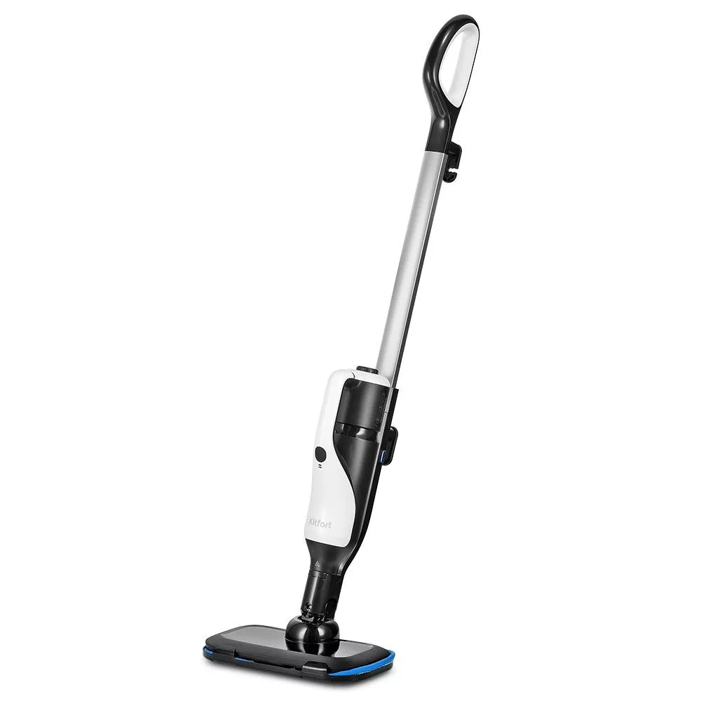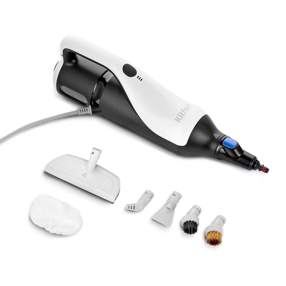 Паровая швабра «2 в 1» КТ-1066 поможет избавиться от пыли и грязи с помощью мощной струи пара, а также продезинфицирует обрабатываемую поверхность. Пар проникает внутрь загрязнения, размягчая и растворяя его, с помощью тряпки частички грязи смываются.