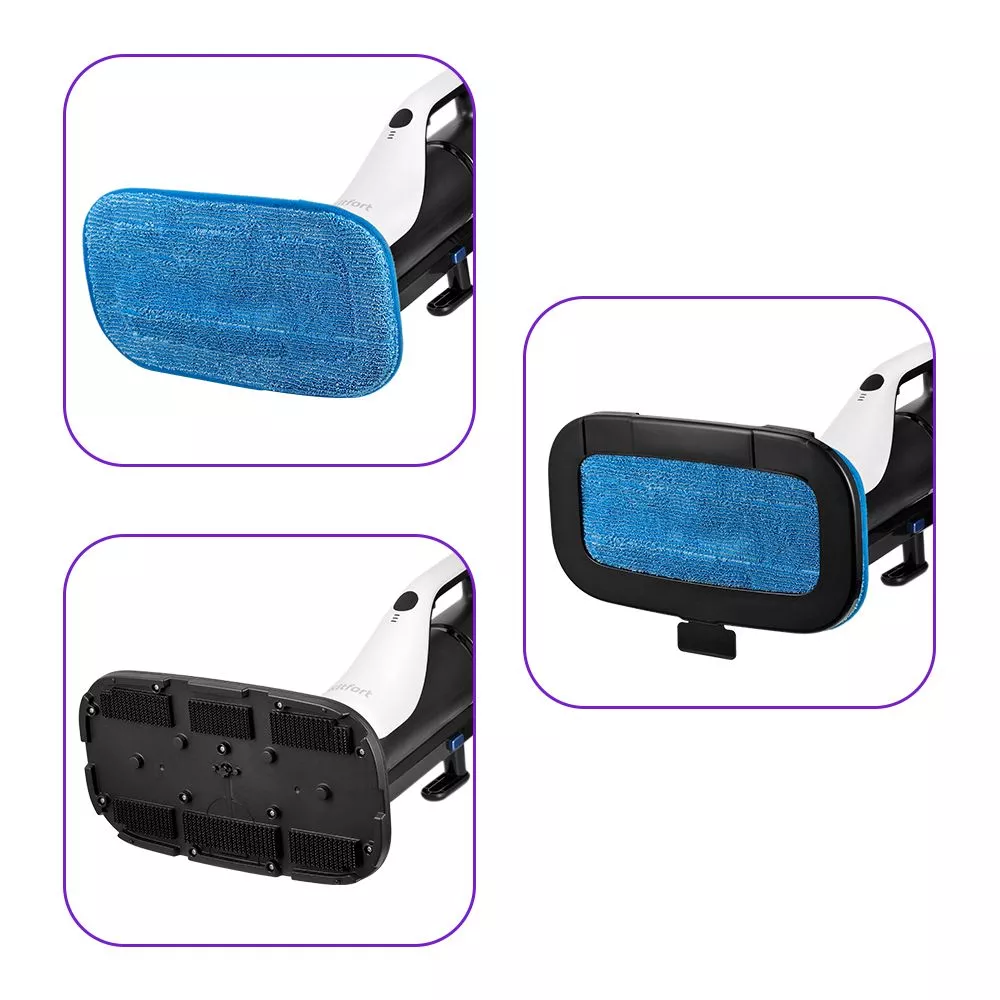 Напольная щётка по краям оснащена липучками для закрепления тряпки. Вы можете использовать тряпку из комплекта или любую другую из натуральных волокон. Рамка для ковра облегчает скольжение щётки для пола по ковру и предотвращает сползание тряпки.