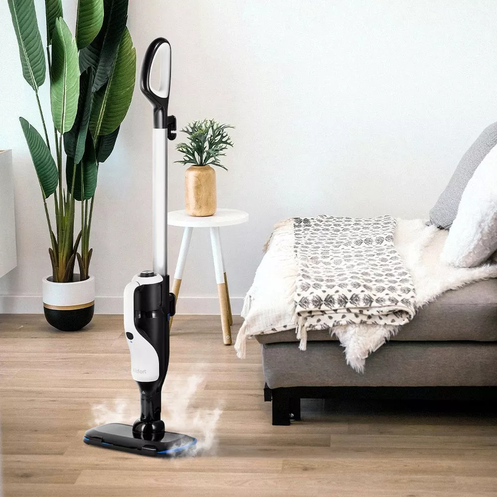 Паровая швабра обладает функцией вертикальной парковки, большим углом наклона при уборке, который поможет легко убирать пространство под мебелью. Для КТ-1066 не нужны чистящие средства, поэтому она станет идеальным решением для уборки дома для аллергиков.