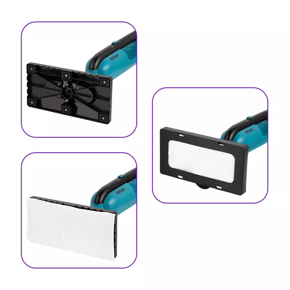Множество насадок, которые идут в комплекте с паровой шваброй, помогут отчистить труднодоступные места и различные поверхности.