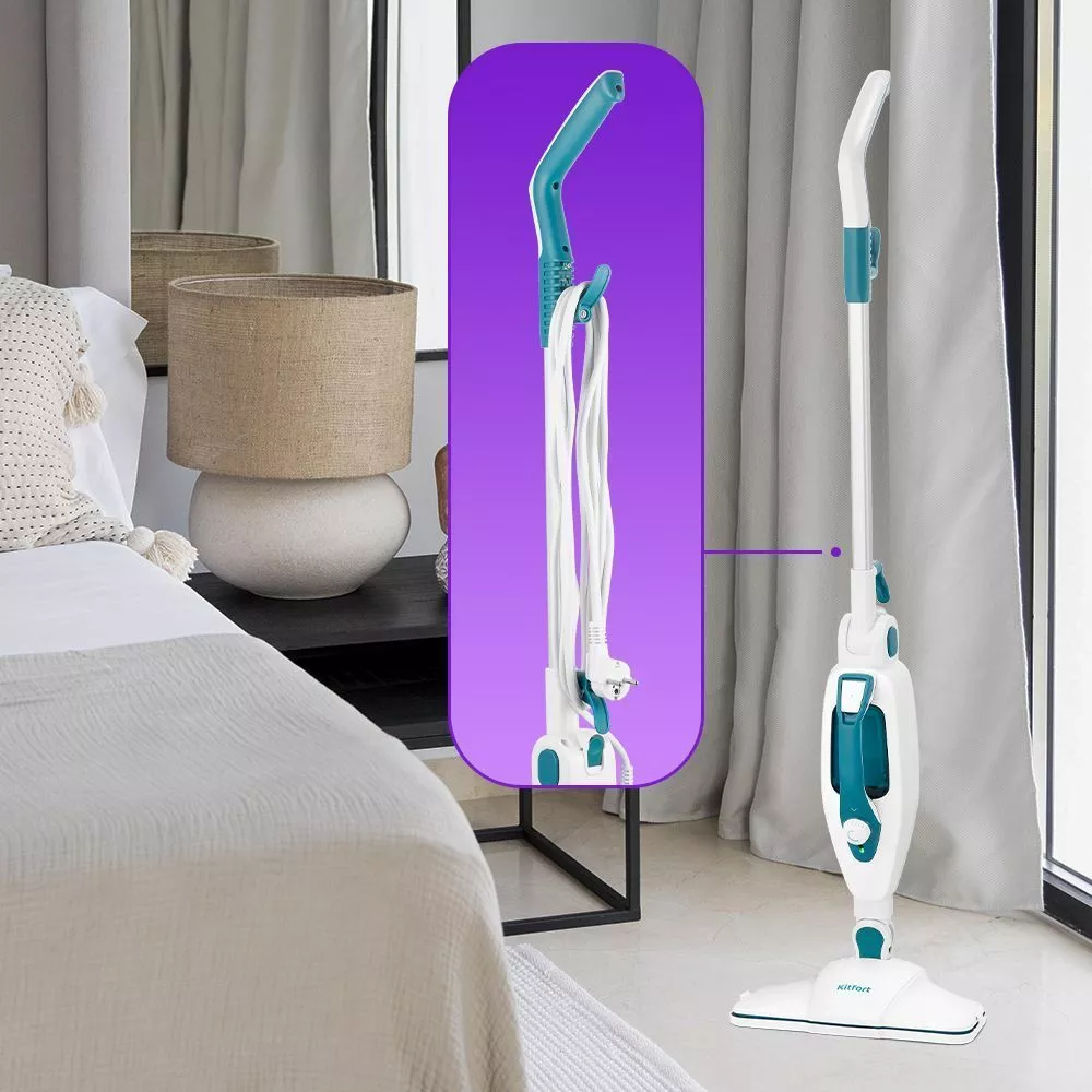 На корпусе предусмотрены держатели для шнура. КТ-1080 очень лёгкая и простая в использовании. Уборка с ней будет проходить быстро и легко. Для паровой швабры не нужны чистящие средства, поэтому она станет идеальным решением уборки дома для аллергиков.