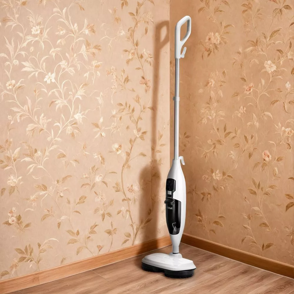Паровая швабра КТ-1095 обладает функцией вертикальной парковки, поэтому её необязательно ставить в шкаф. А благодаря компактным размерам, она не будет занимать много места.