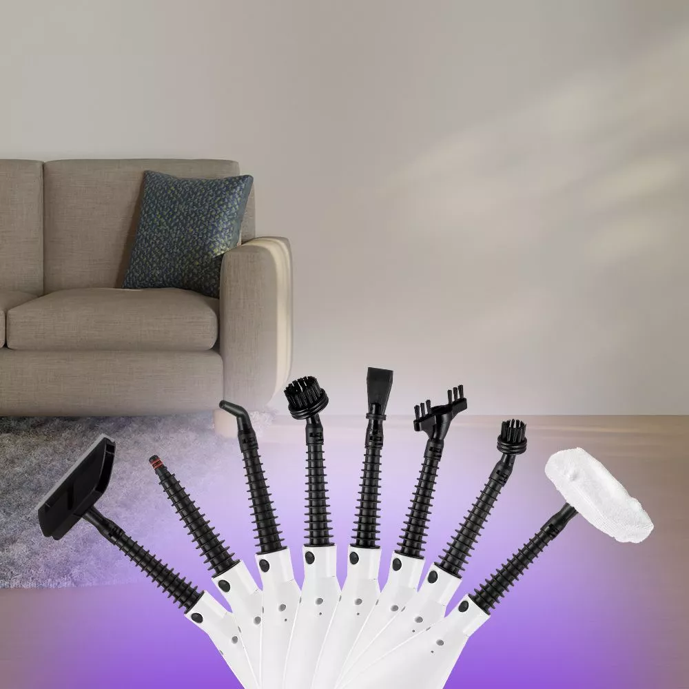 Для очистки окон, зеркал и кафельной плитки предусмотрена специальная насадка для отпаривания со скребком. Её можно использовать с тряпкой для отпаривания, чтобы отпаривать одежду и чистить обивку мягкой мебели.