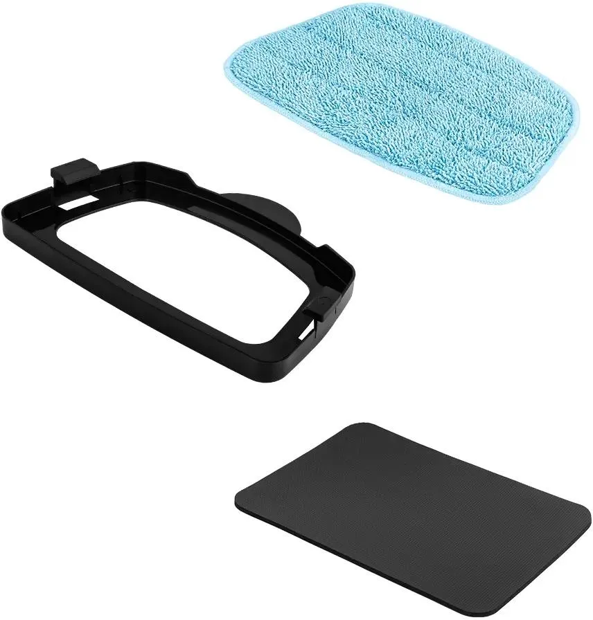 1. Паровая швабра — 1 шт. • Корпус — 1 шт. • Резервуар для воды с крышкой — 1 шт. • Удлинительная трубка с рукояткой — 1 шт. 2. Тряпка для пола — 1 шт. 3. Рамка для ковра — 1 шт. 4. Коврик — 1 шт.