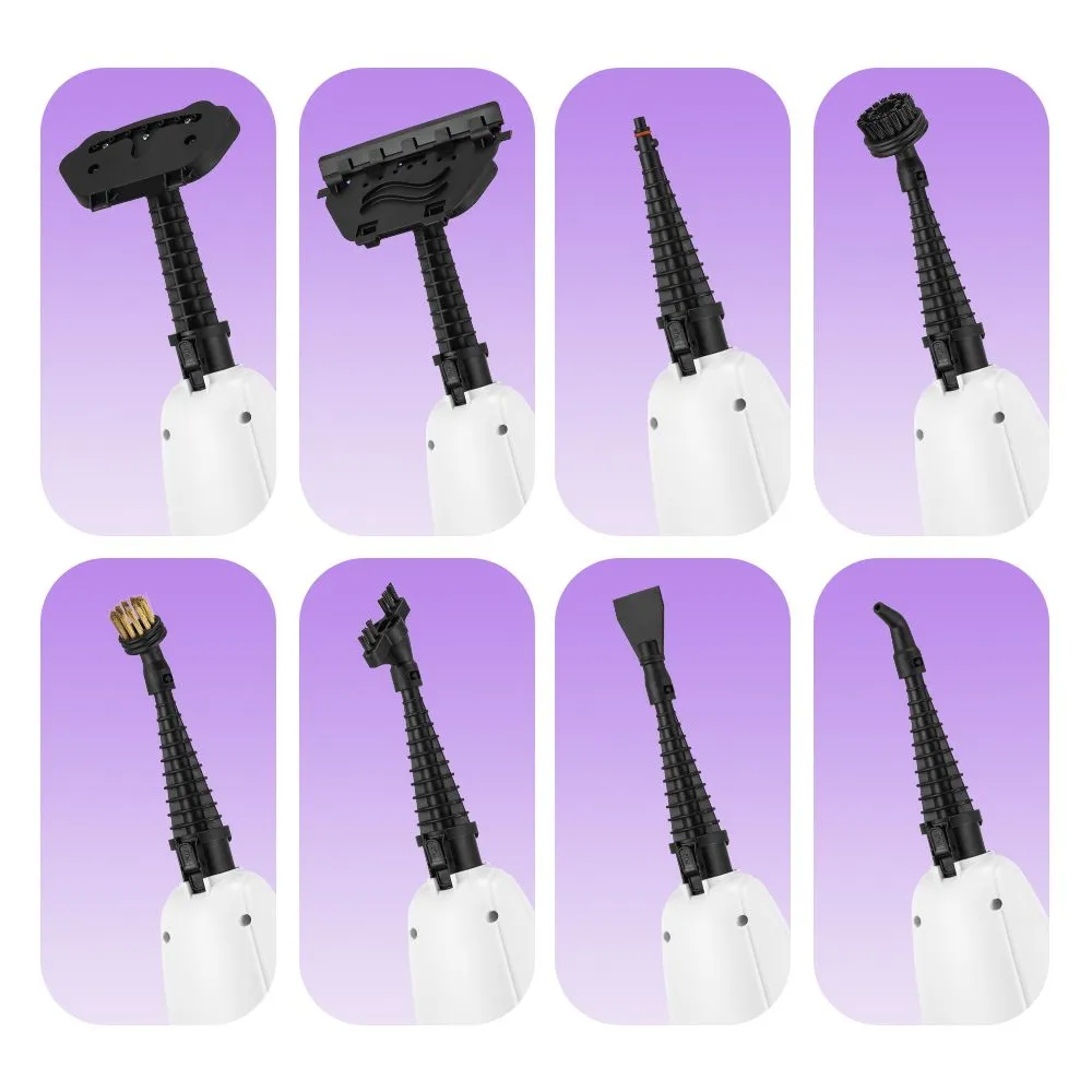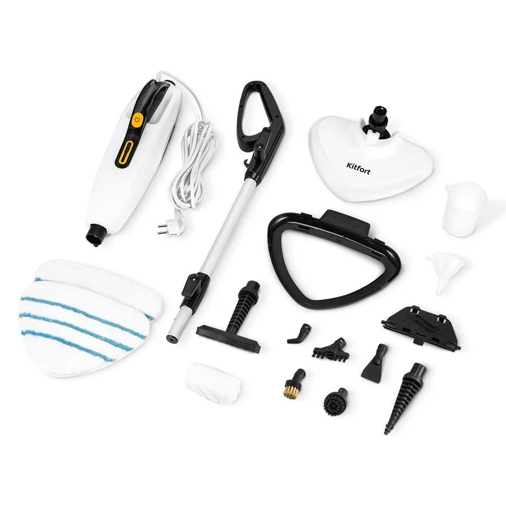 При помощи восьми специальных насадок из комплекта КТ-3917 очистит напольные покрытия, раковину и плиту на кухне, зеркала, окна и плитку в ванной без каких-либо химических средств, исключительно паром.